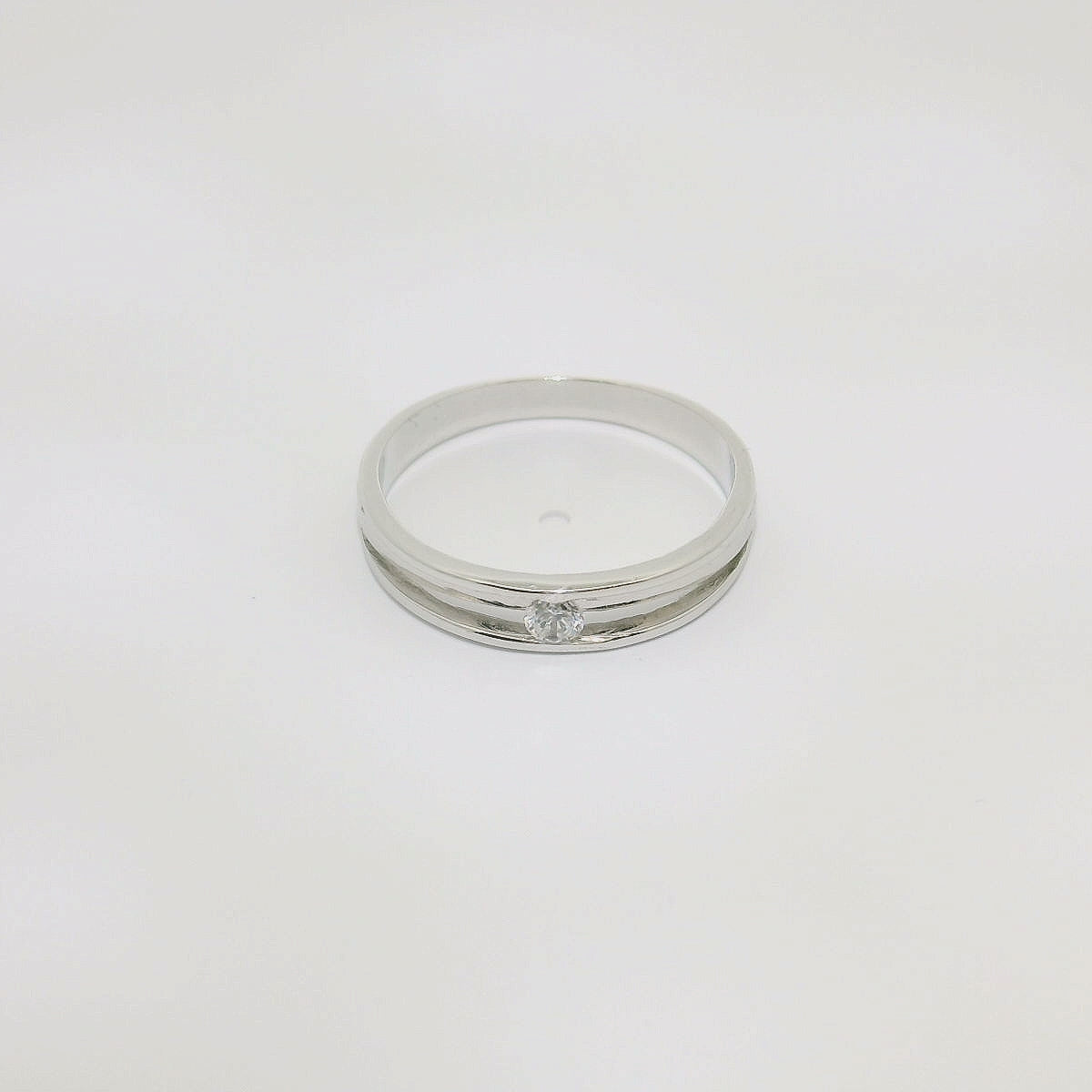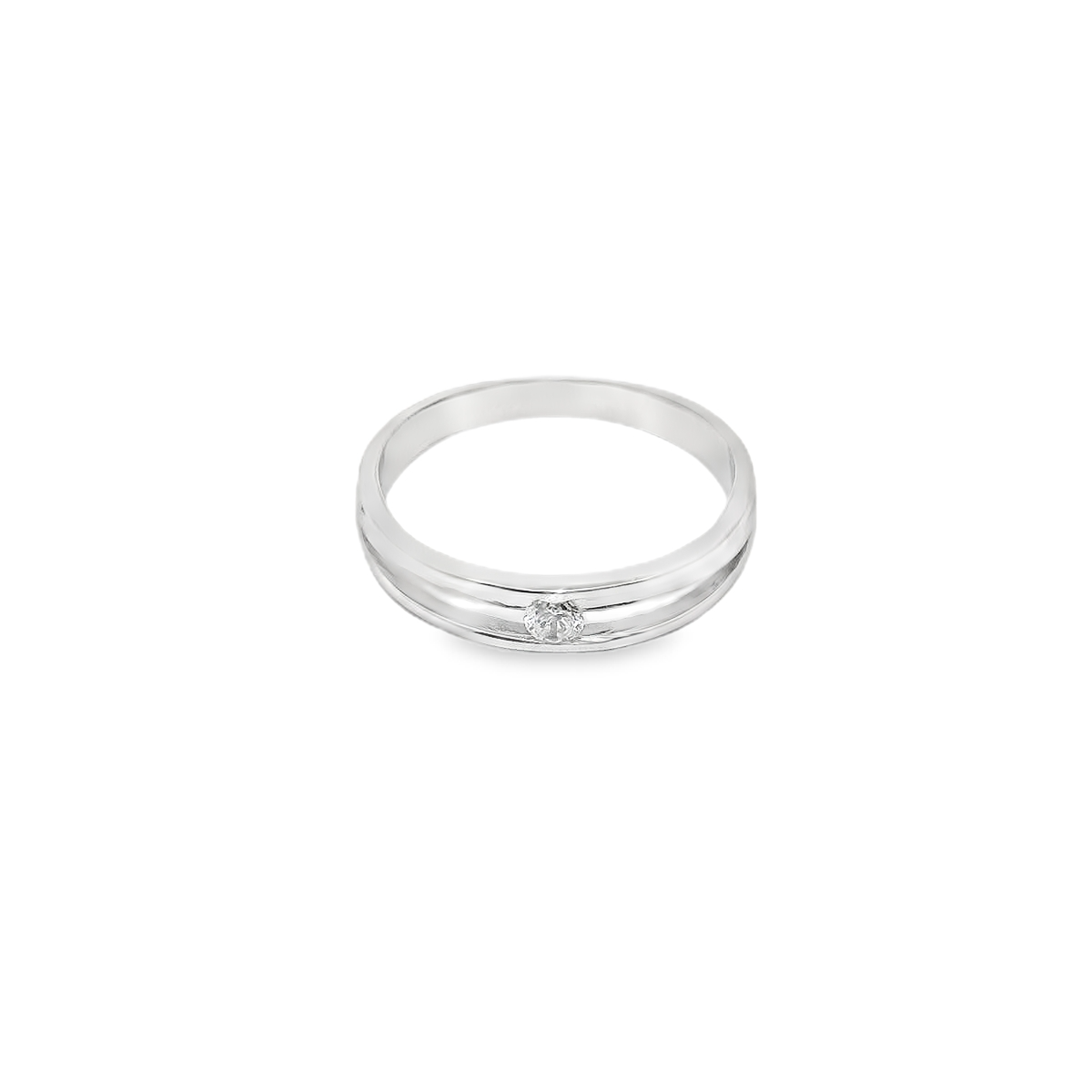 Anillo de oro blanco de 18K con diamante de 0.06 CT en talla brillante de calidad GH-VS.