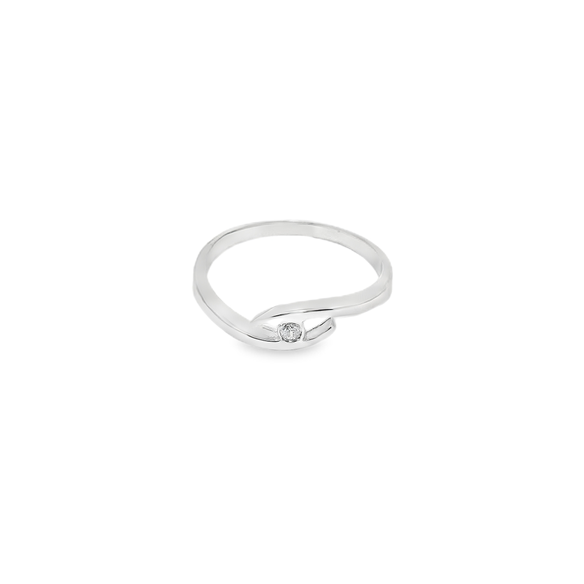 Anillo de oro blanco de 18K con diamante de 0.02 CT en talla brillante de calidad GH-VS.