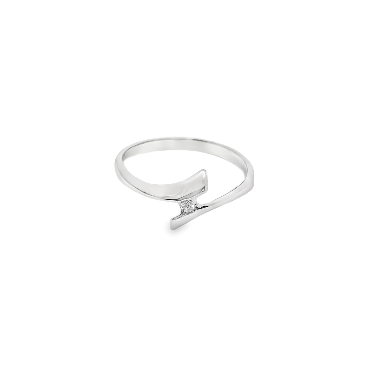 Anillo de oro blanco de 18K con diamante de 0.03 CT en talla brillante de calidad GH-VS.