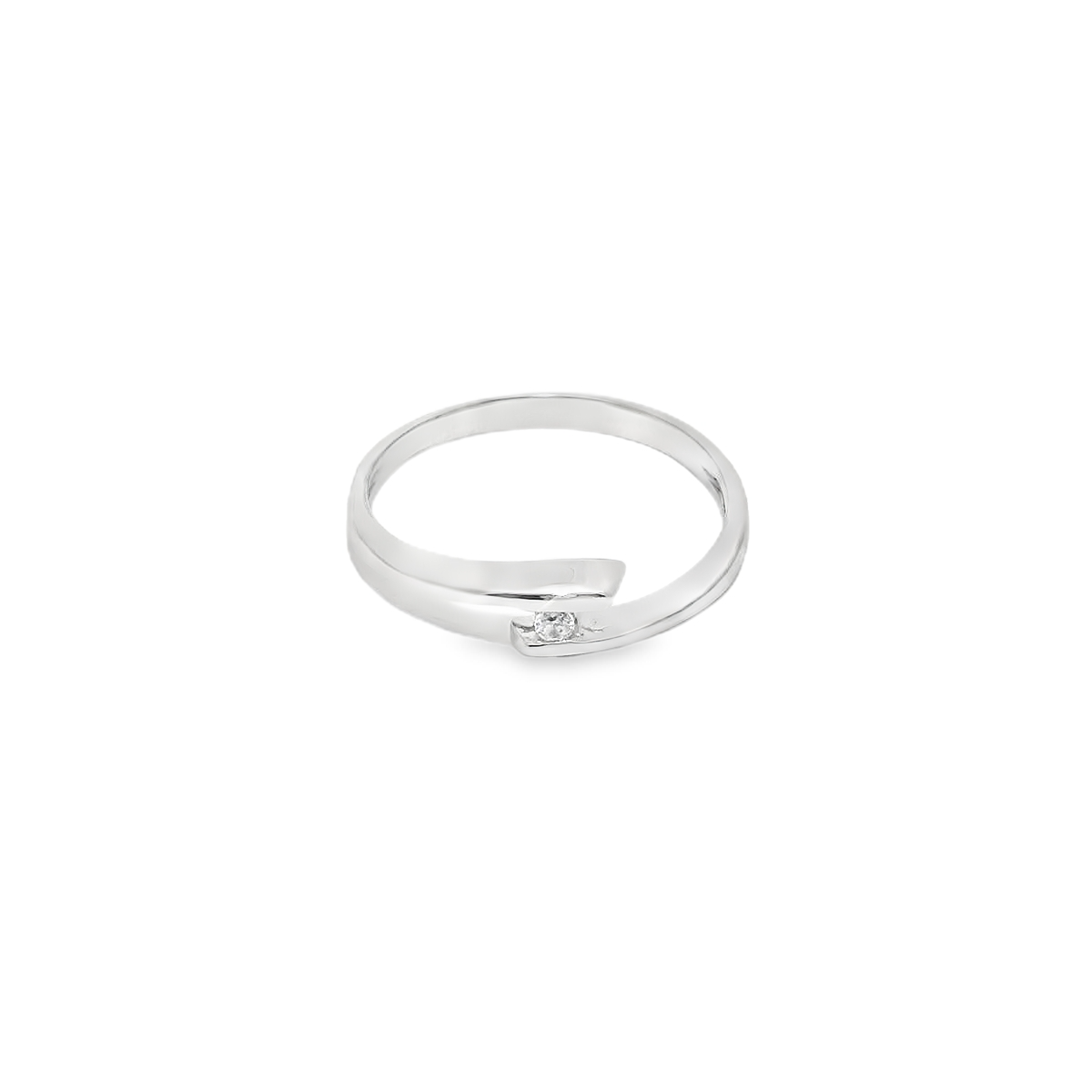 Anillo de oro blanco de 18K con diamante de 0.02 CT en talla brillante de calidad GH-VS.