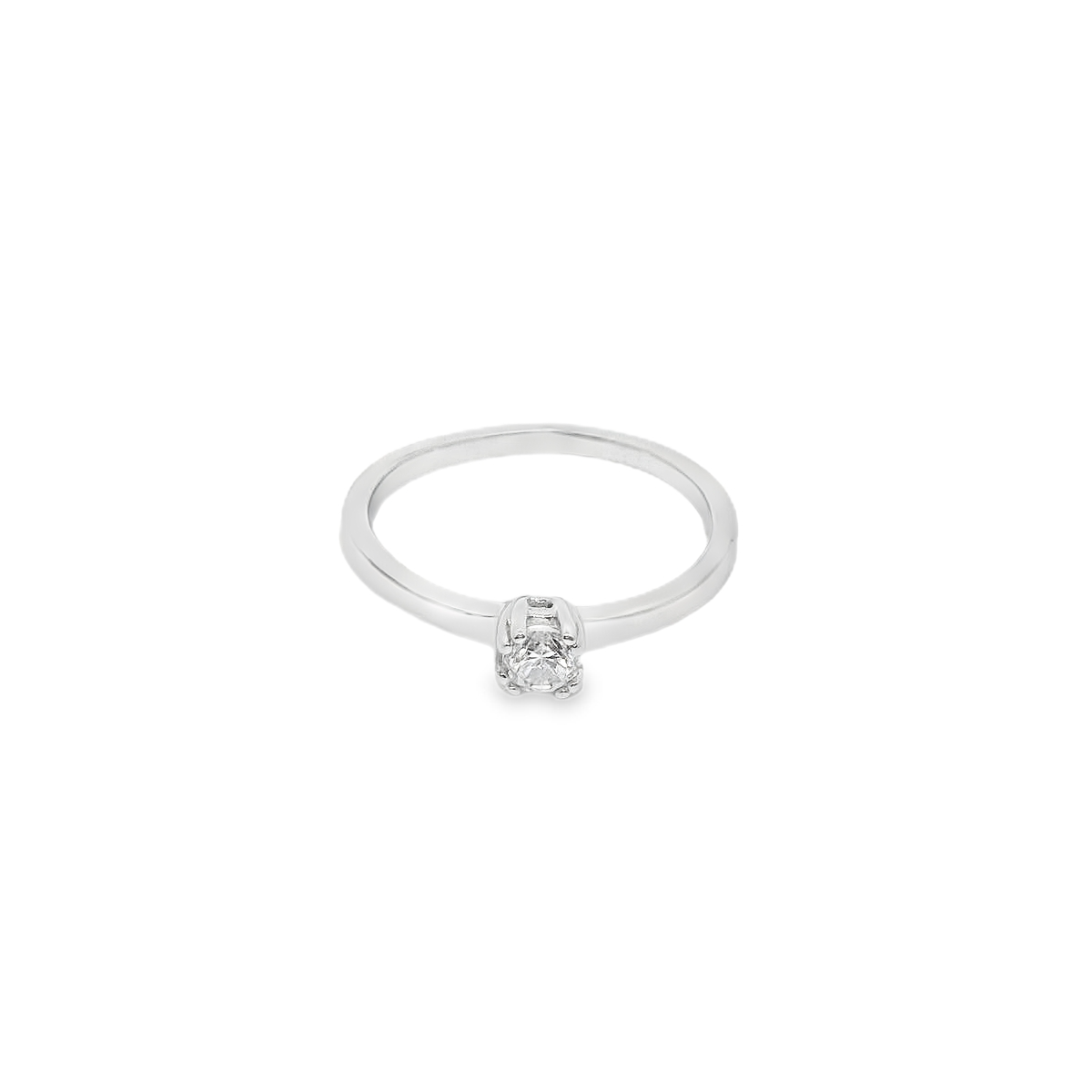 Anillo de oro blanco de 18K con diamantes en talla brillante de 0.23 CTS y calidad GH-VS.
