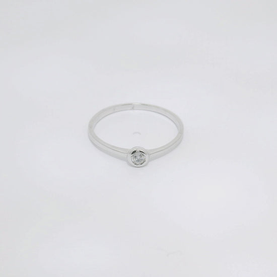 Anillo de oro blanco de 18K con diamantes en talla brillante de 0.05 CTS y calidad GH- VS.