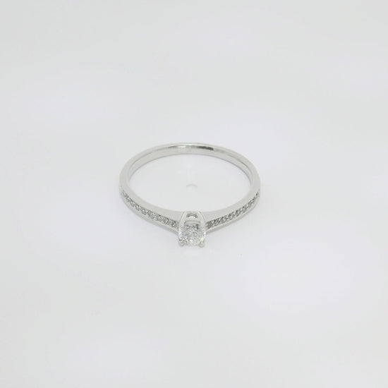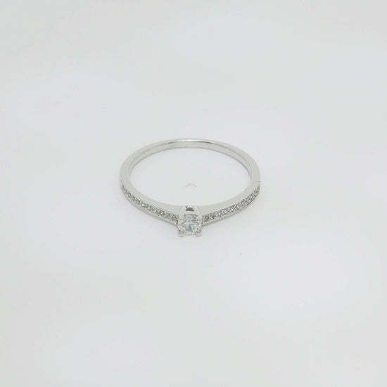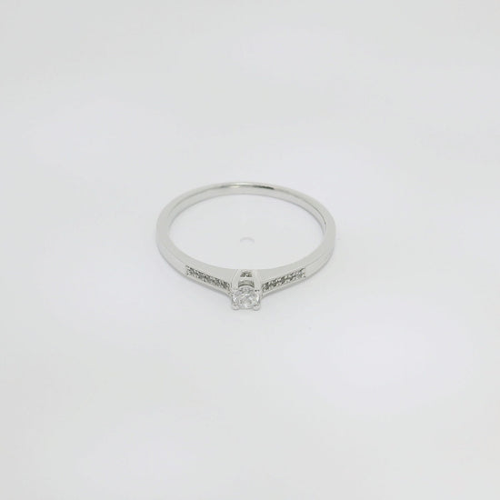 Anillo de oro blanco de 18K con diamantes en talla brillante de calidad GH-VS.