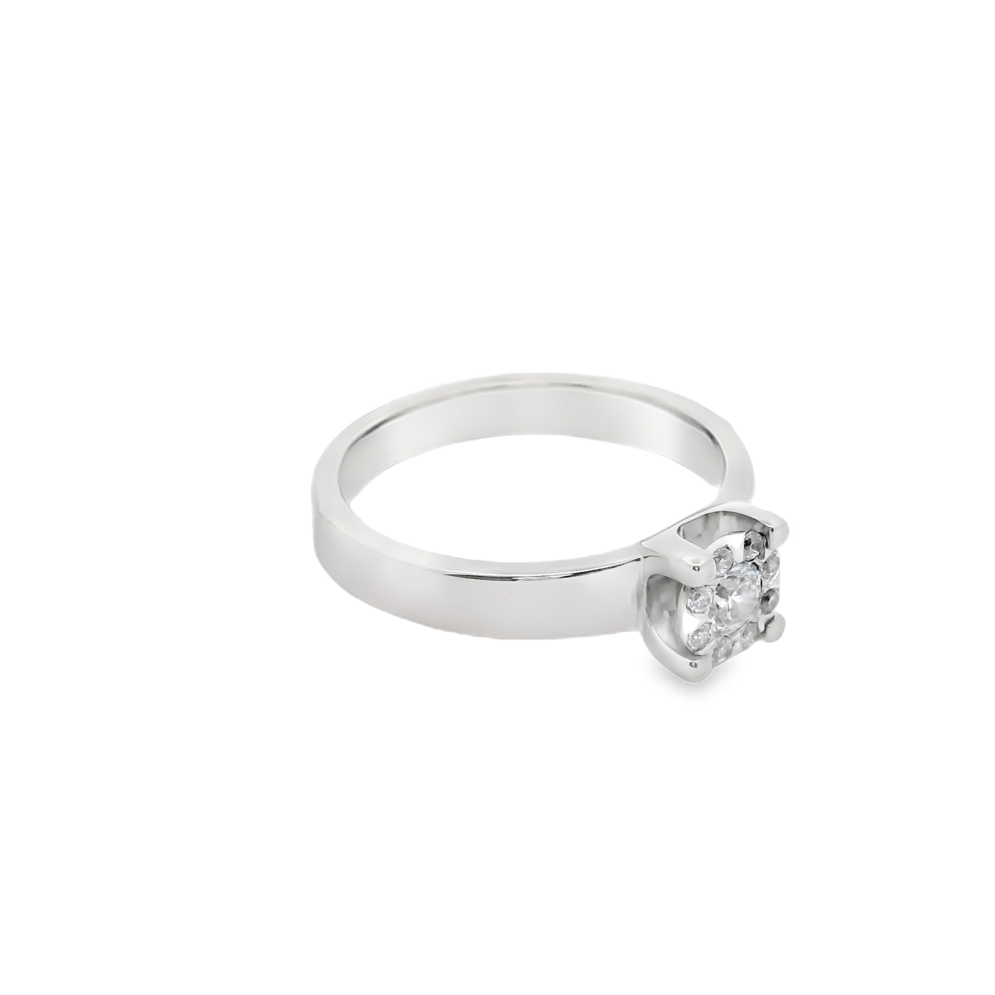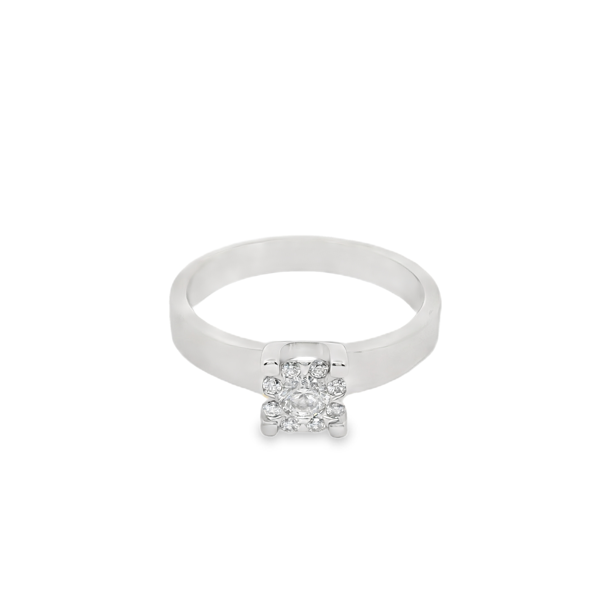 Anillo de oro blanco de 18K con diamantes en talla brillante de 0.23 CTS y calidad GH- VS.
