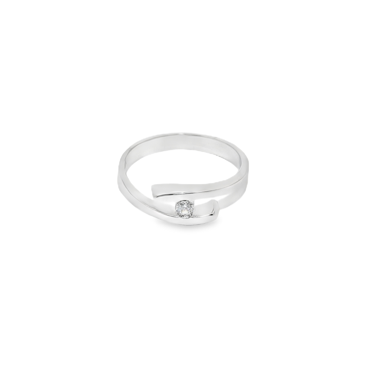 Anillo de oro blanco de 18K con diamantes en talla brillante de 0.15 CTS y calidad GH- VS.