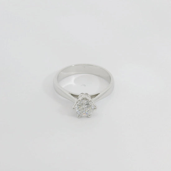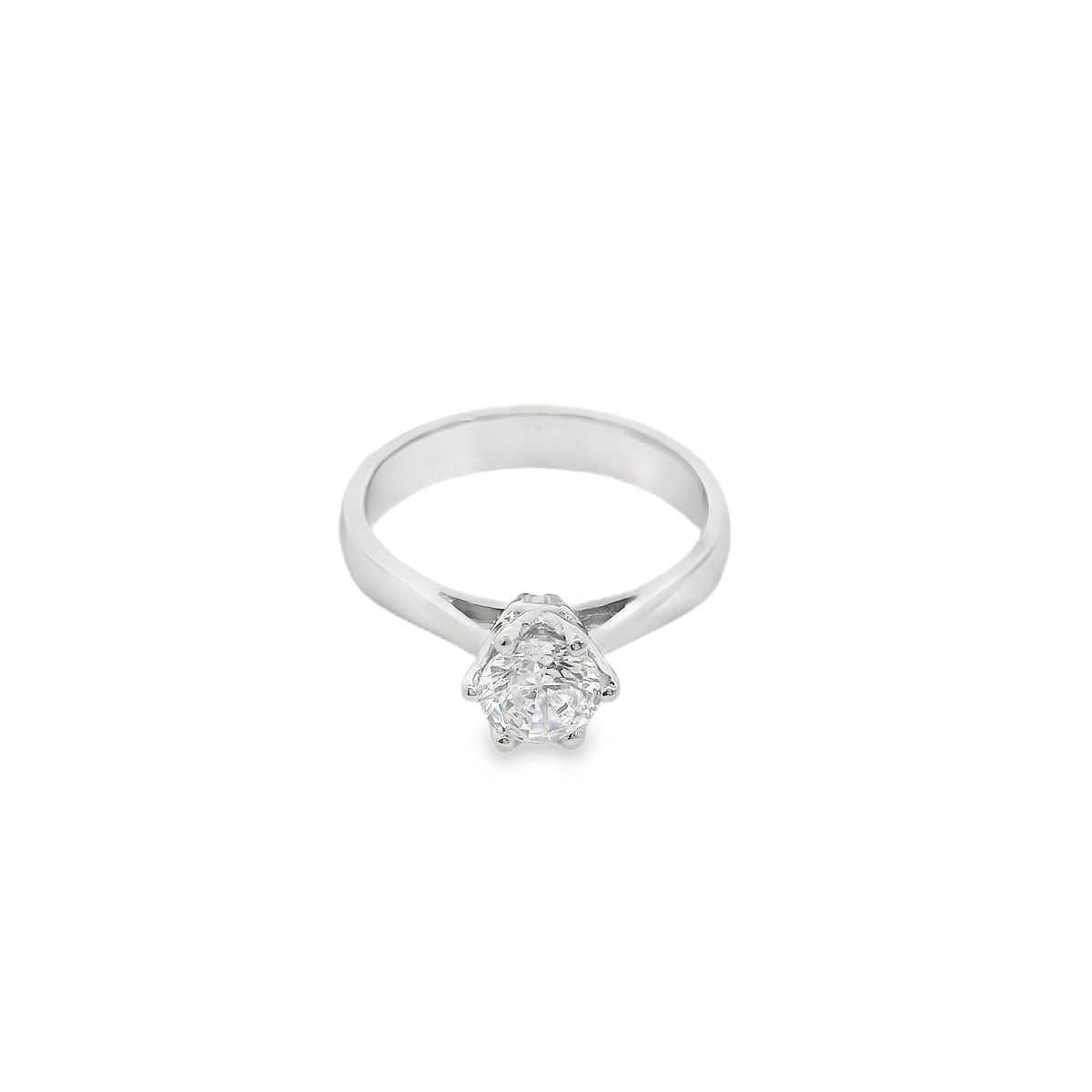 Anillo de oro blanco de 18K con diamantes en talla brillante de 0.50 CTS y calidad GH-VS.