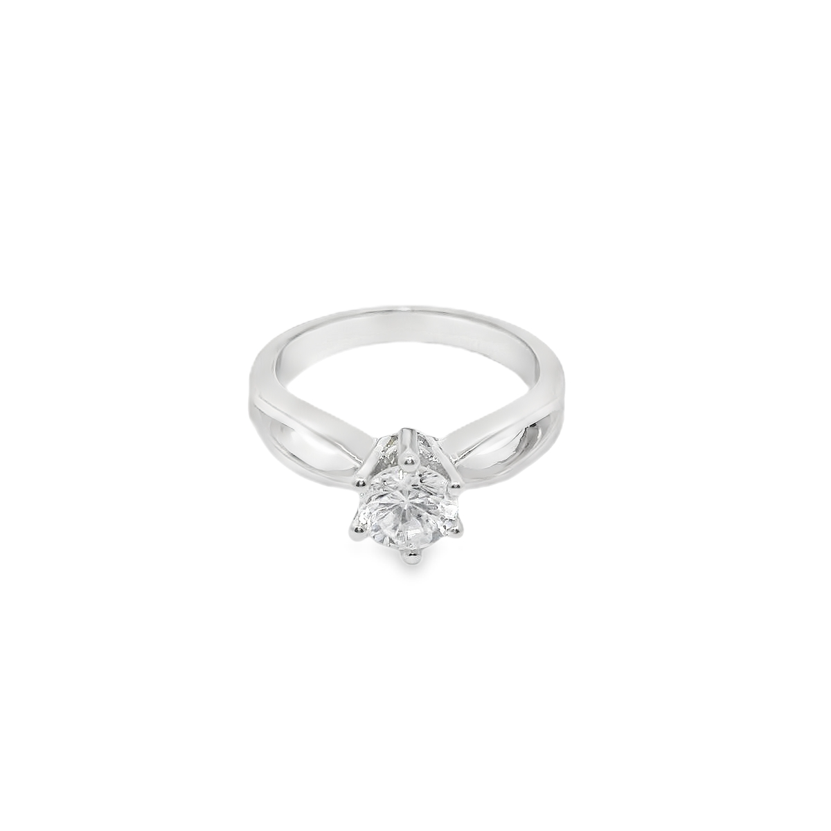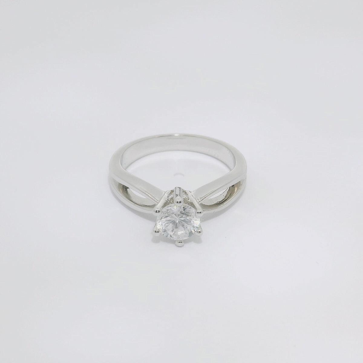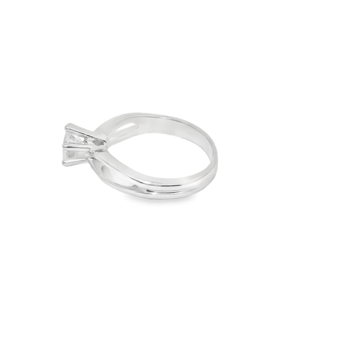 Anillo de oro blanco de 18K con diamante de 0.70 CT en talla brillante de calidad GH-VS.