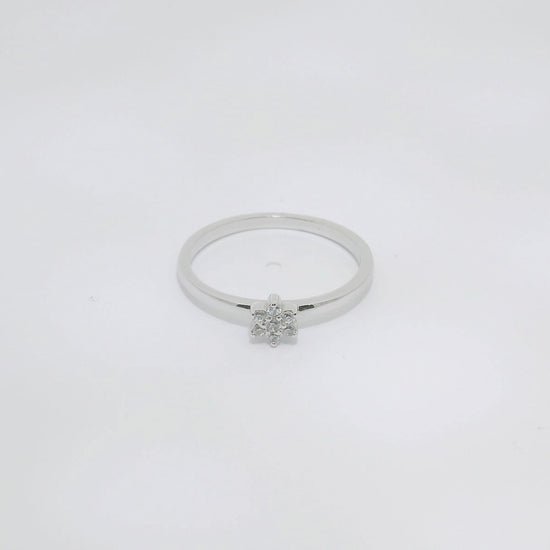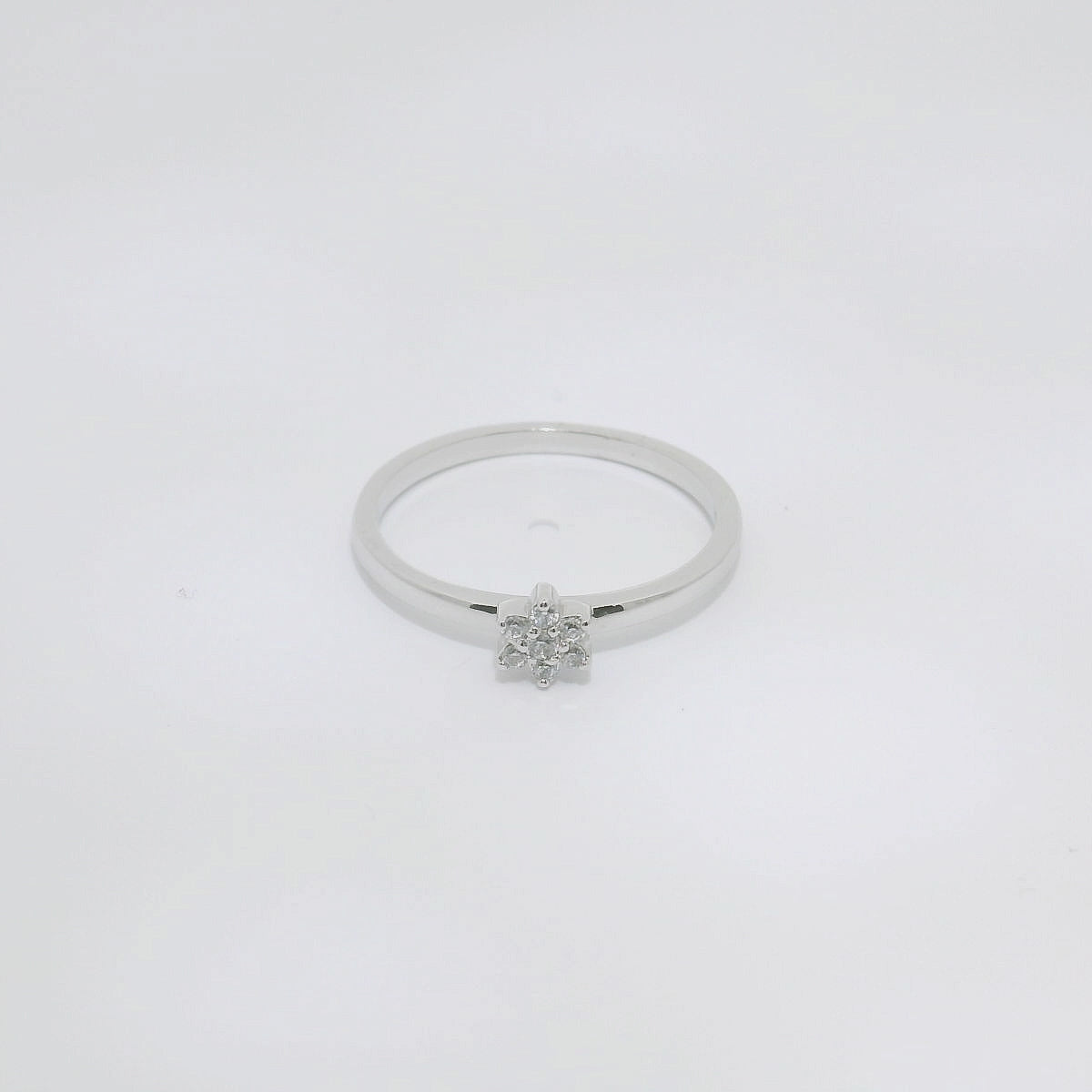 Anillo de oro blanco de 18K con diamante de 0.07 CT en talla brillante de calidad GH-VS.