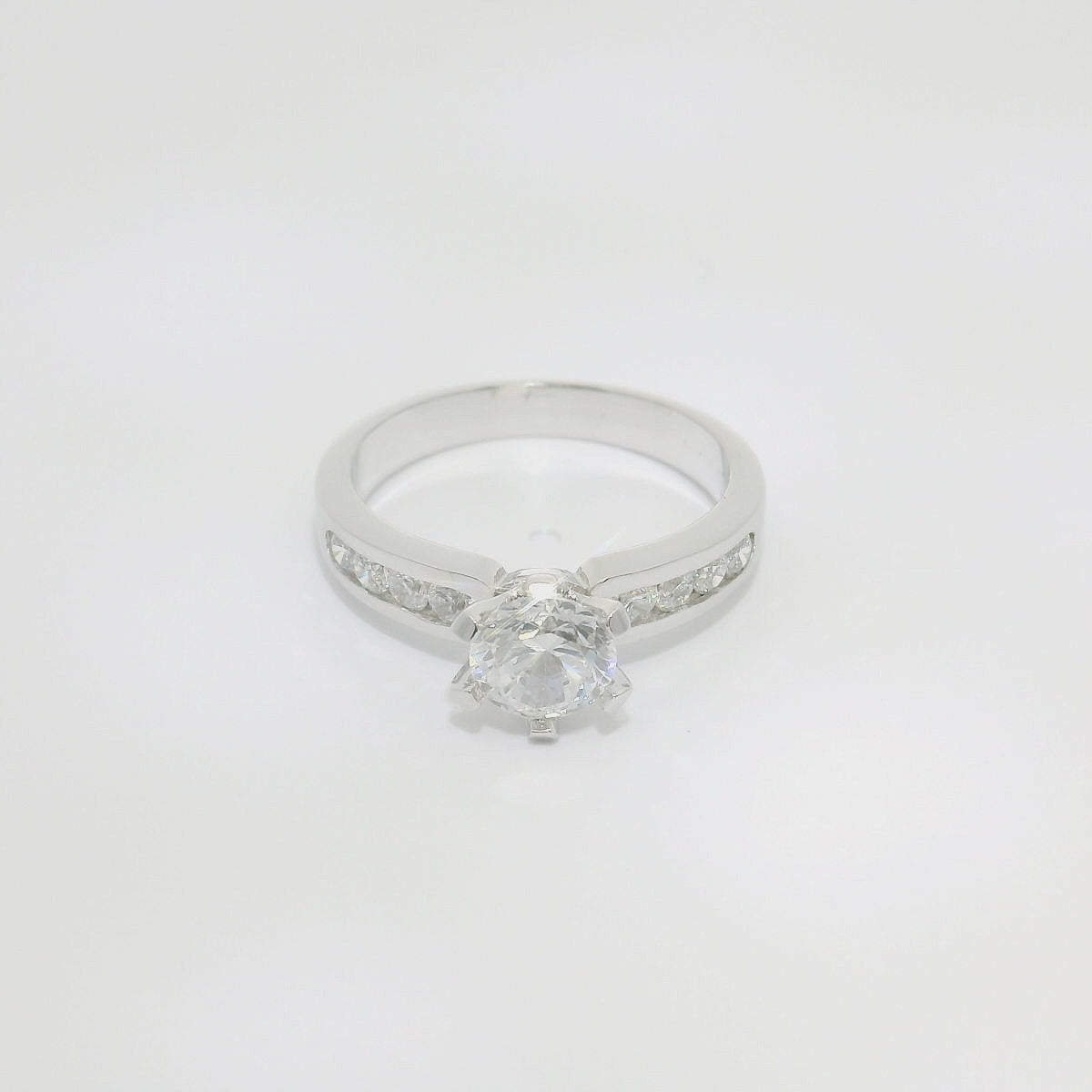 Anillo de oro blanco de 18K con diamante en talla brillante. Piedra central de 0.80 CT, con 0.40 CT en el brazo. Calidad GH-VS.