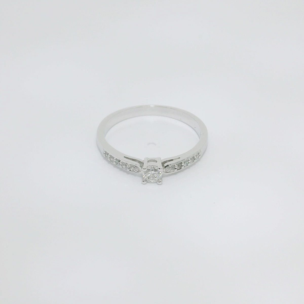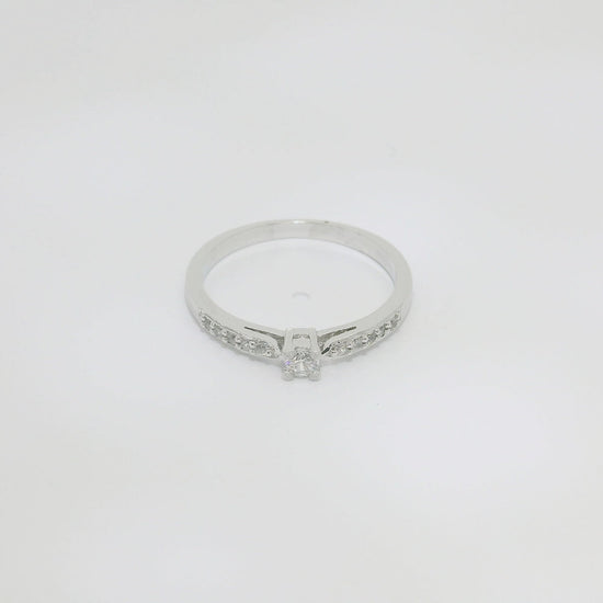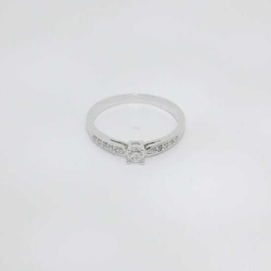 Anillo de oro blanco de 18K con diamantes en talla brillante y calidad GH- VS.