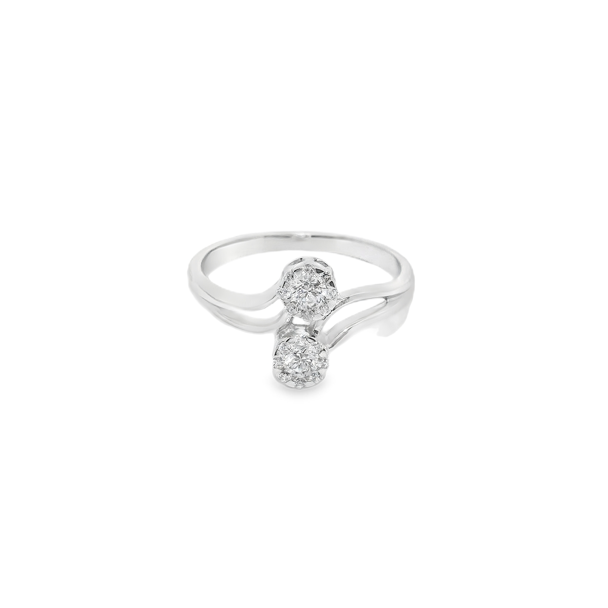 Anillo de oro blanco de 18K con diamante en talla brillante. Piedras centrales de 0.20 CT, con 0.10 CT en el brazo. Calidad GH-VS.