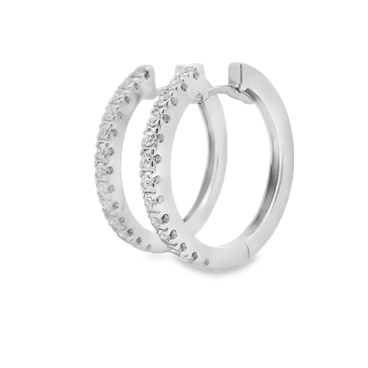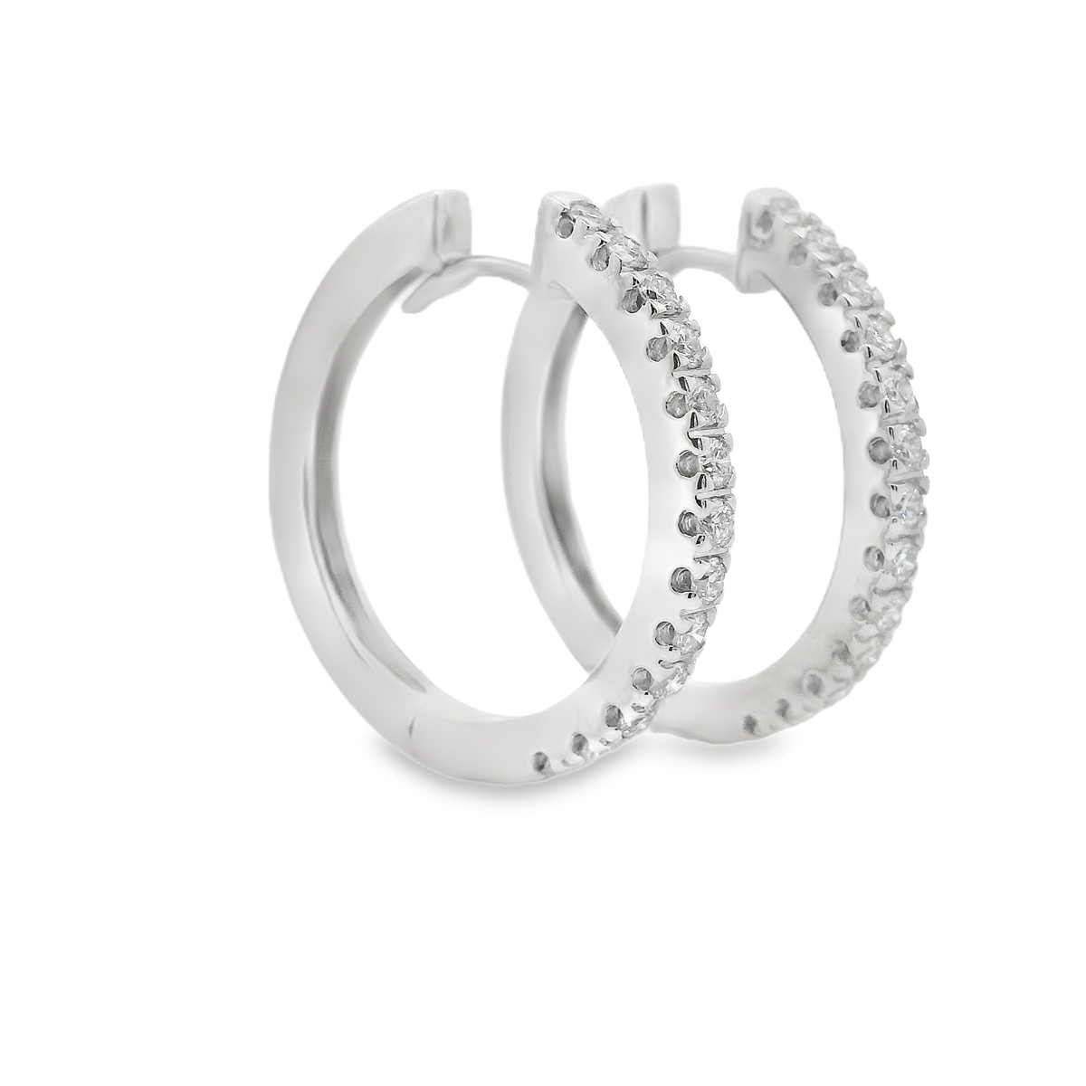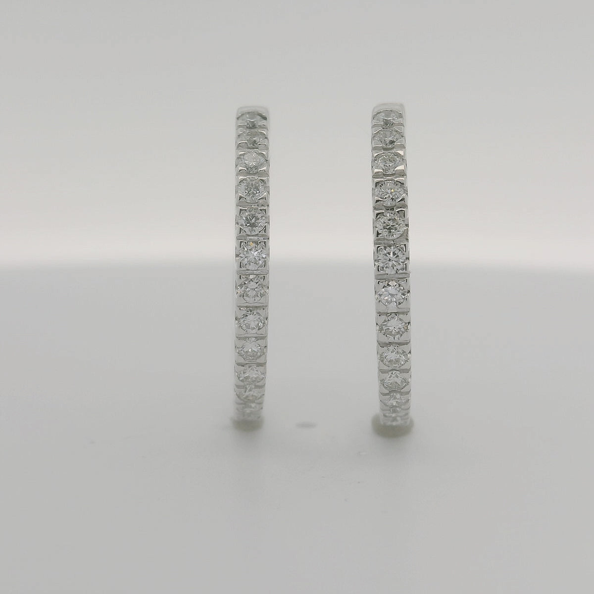 Pendientes de oro blanco de 18K con diamantes en talla brillante con 0.52 cts y calidad GH-VS. 2.2 cm de diámetro.