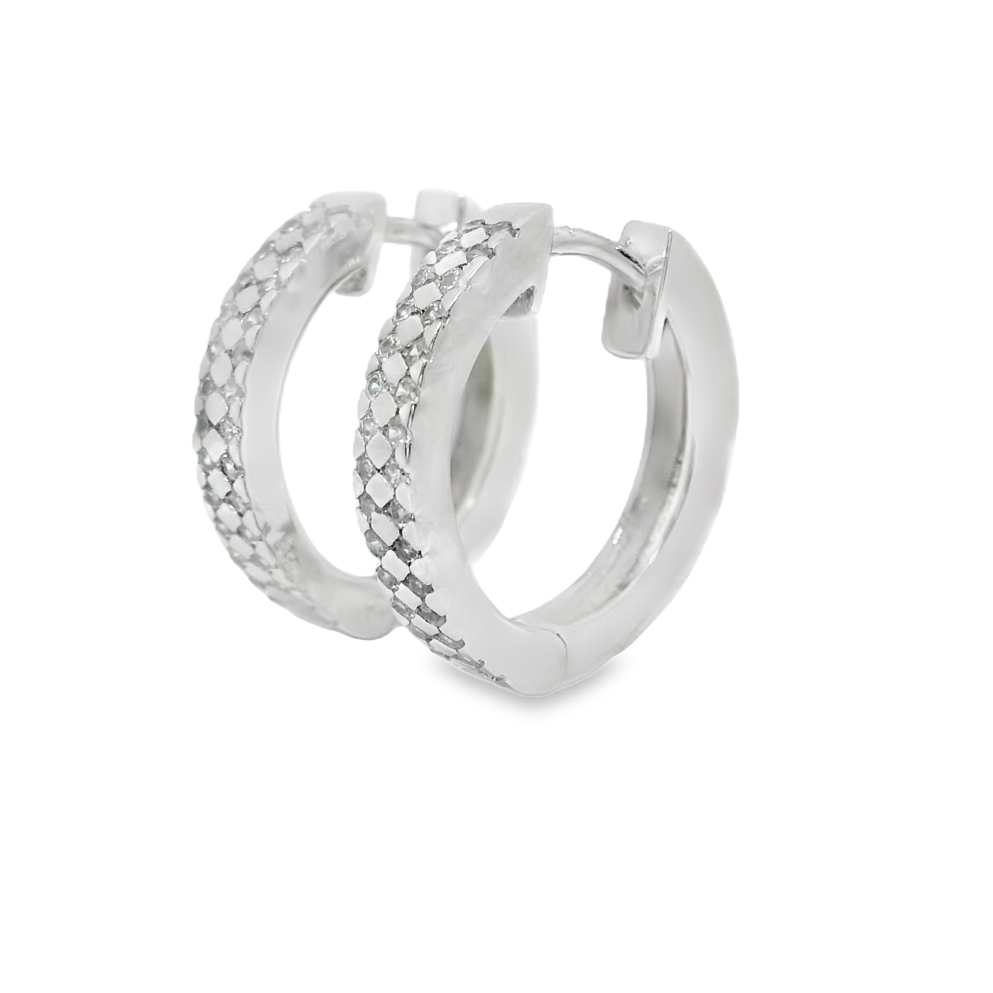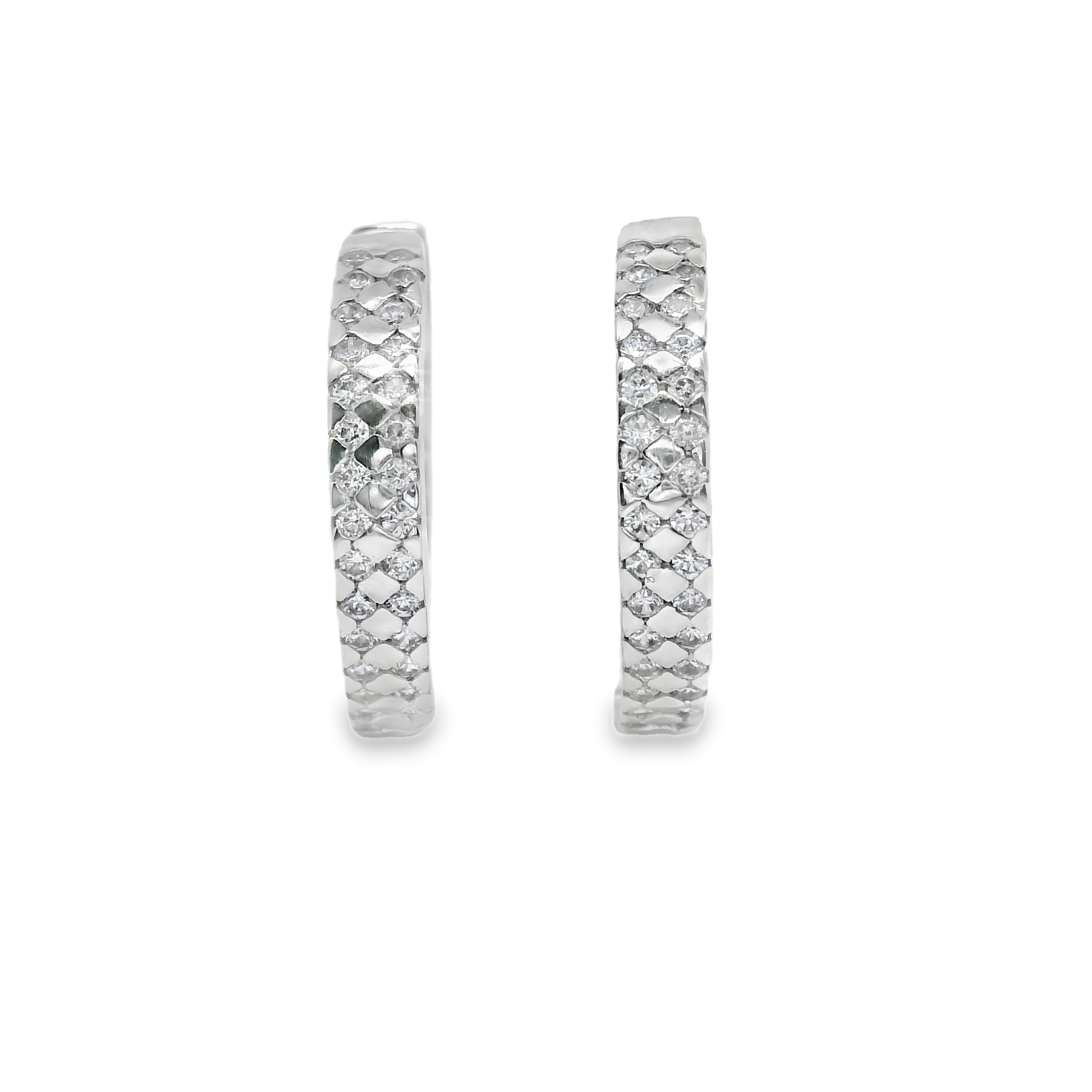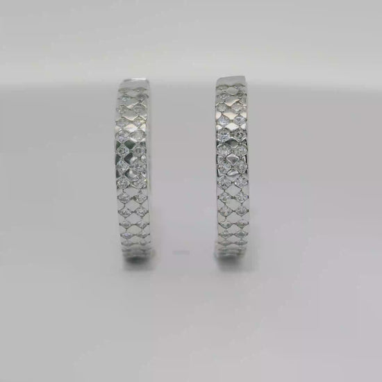 Pendientes de oro blanco de 18K con diamantes en talla brillante de 0.30 cts y calidad GH-VS. 1.5 cm de diámetro.