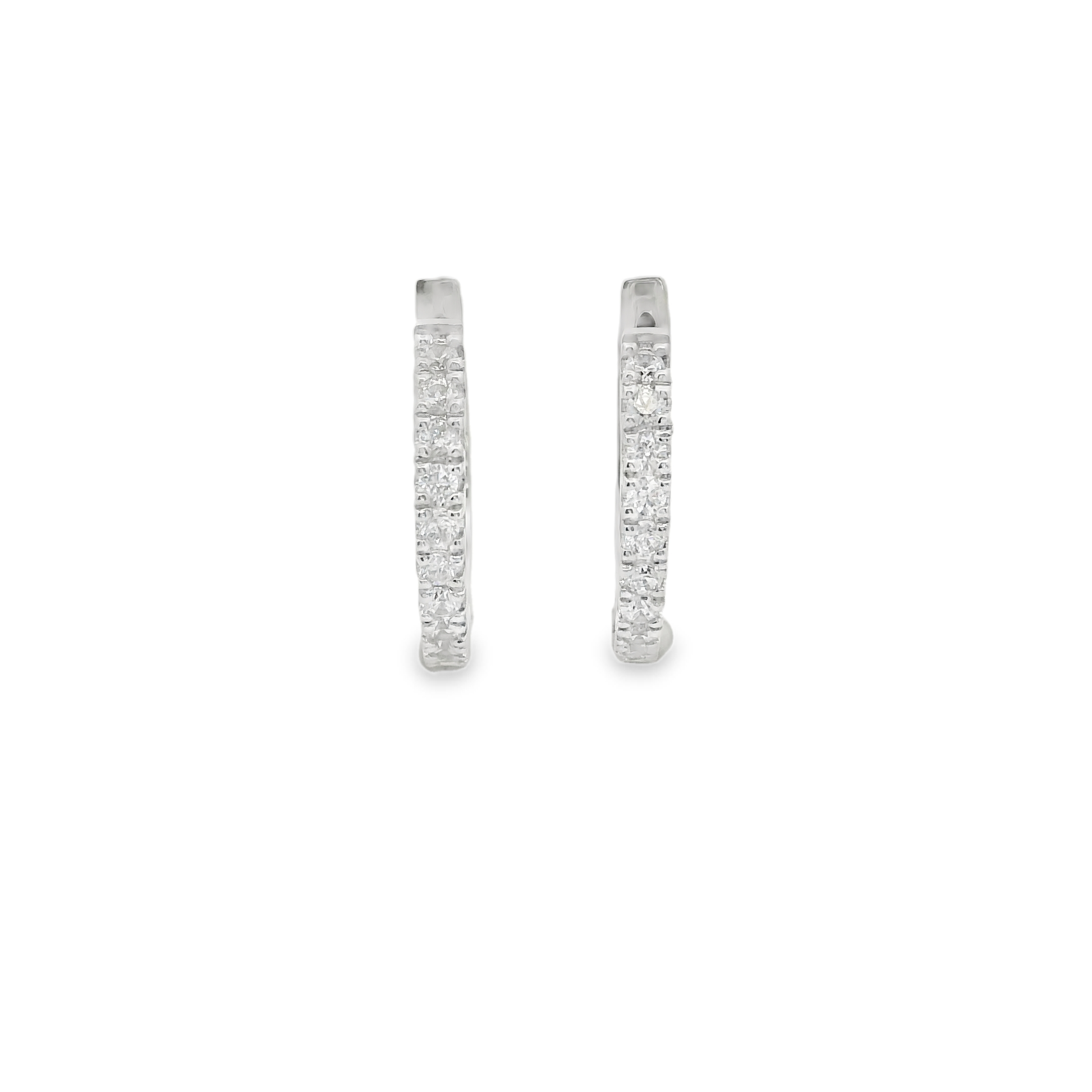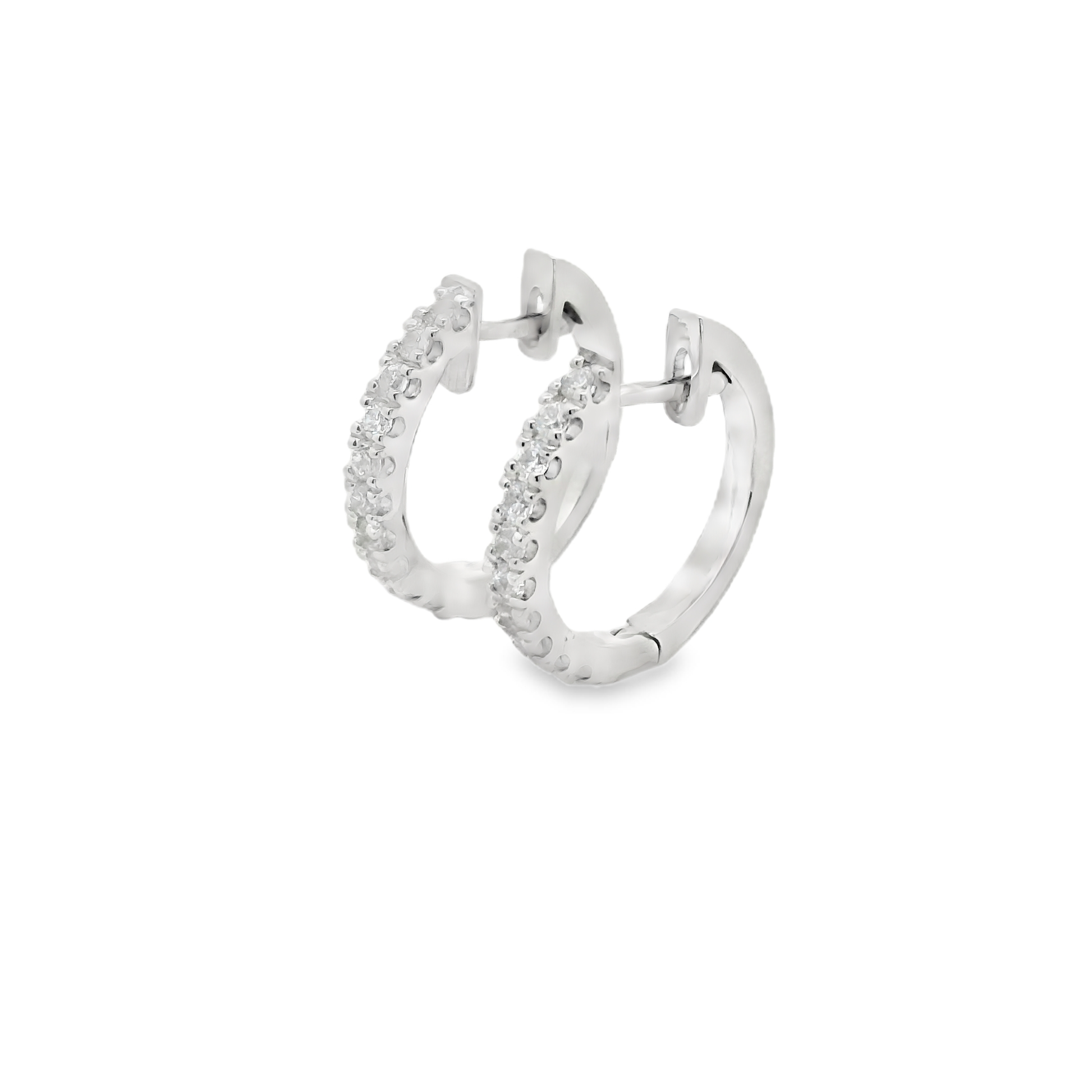 Pendientes de oro blanco de 18K con diamantes en talla brillante de 0.30 cts y calidad GH-VS. 1.5 cm de diámetro.