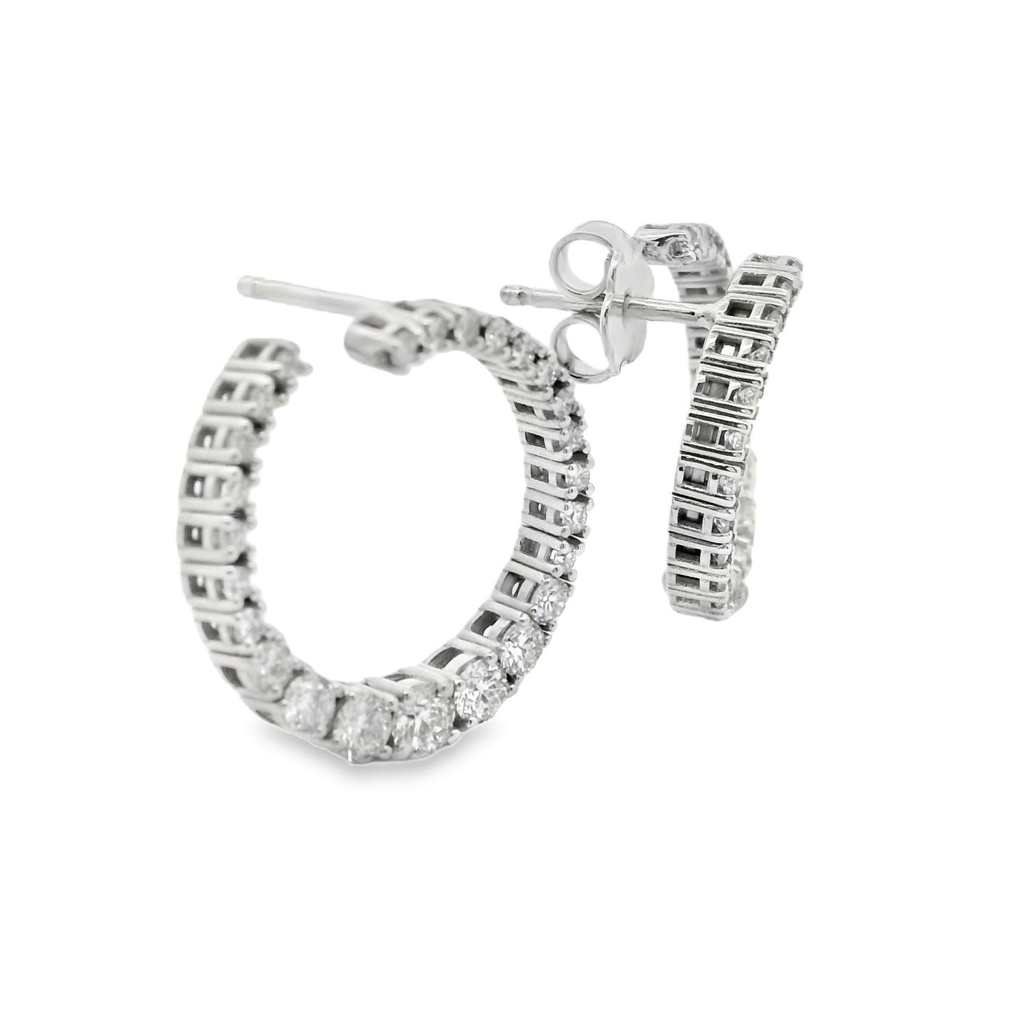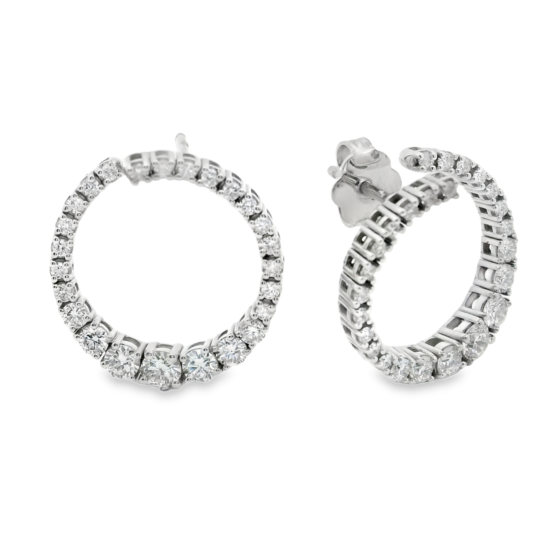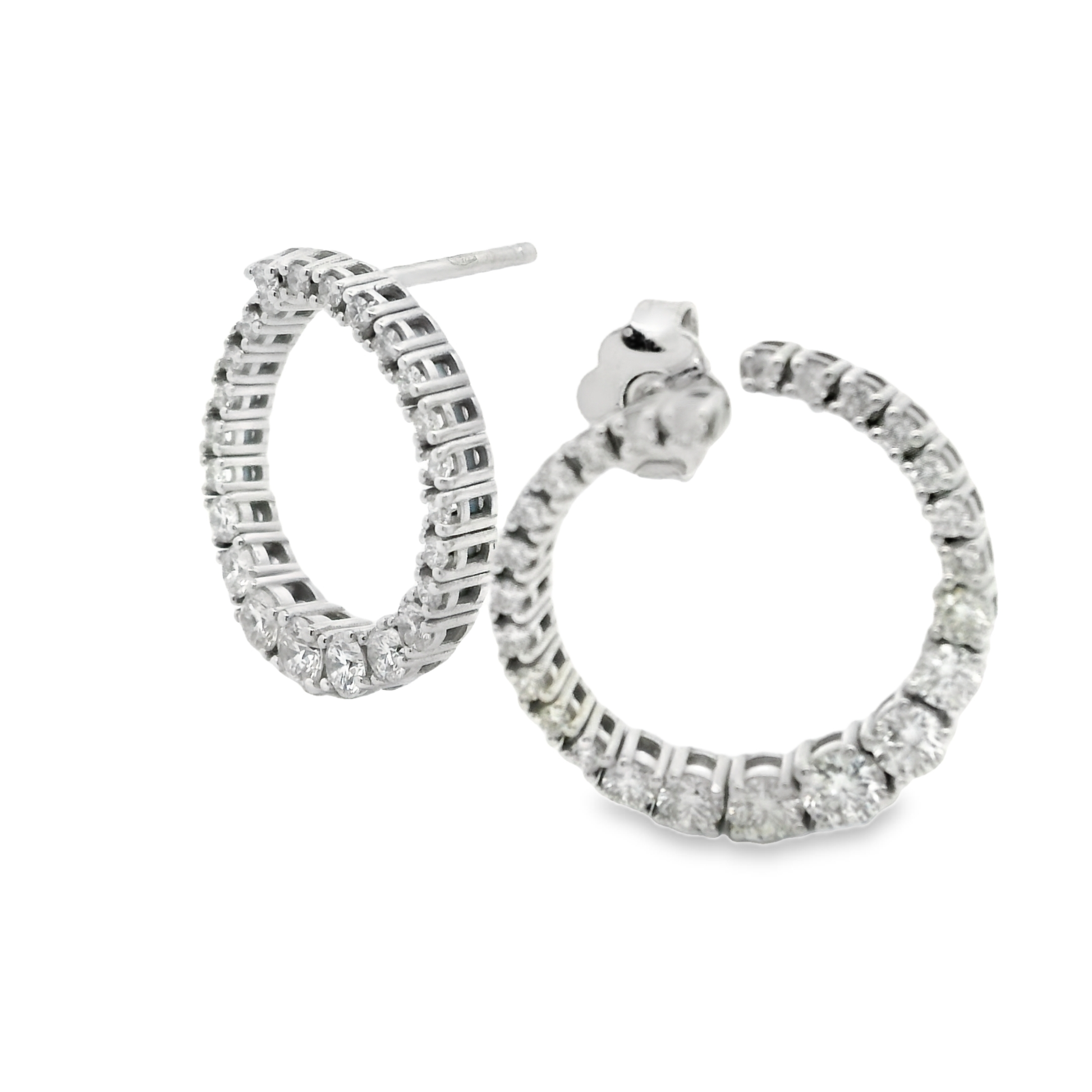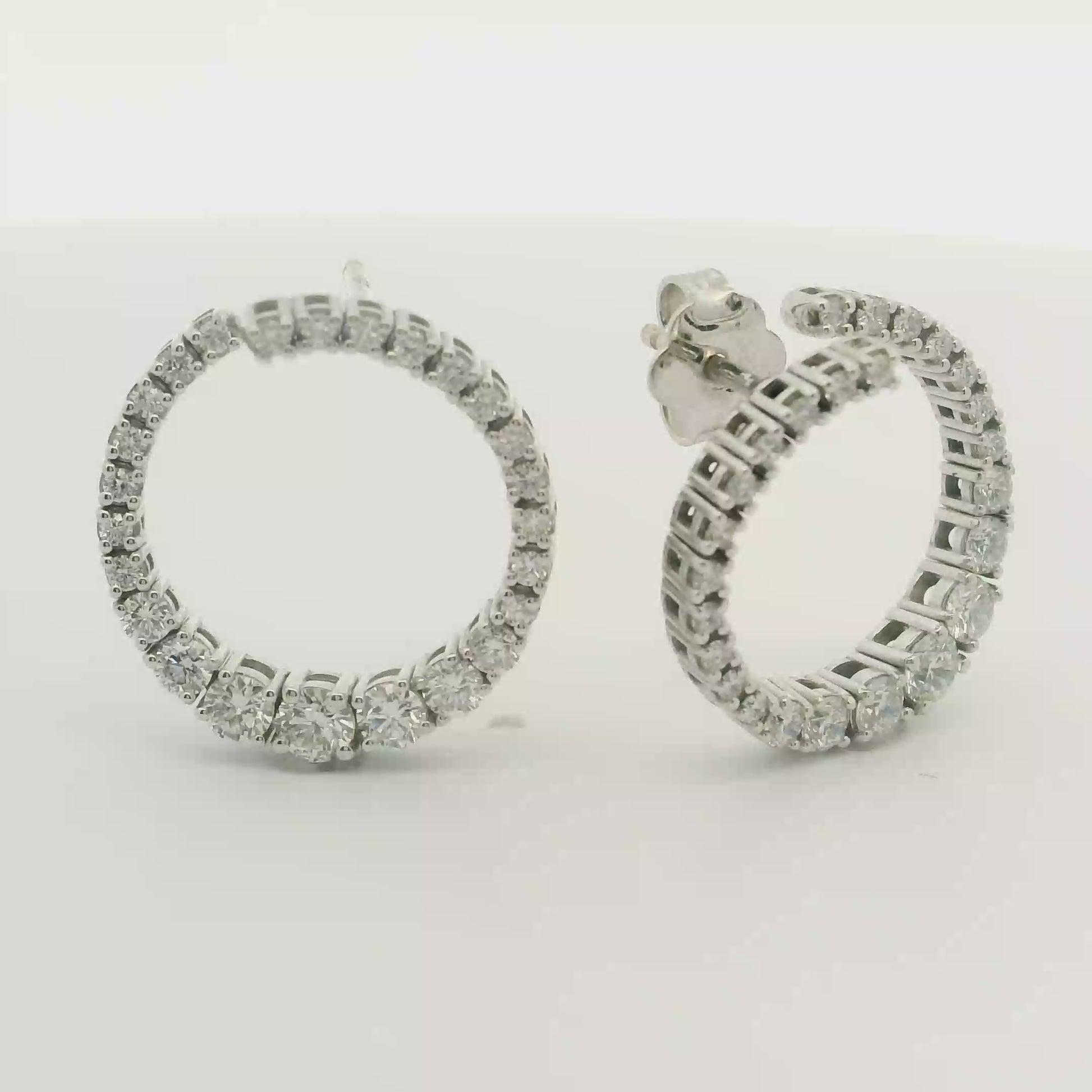 Pendientes de oro blanco de 18K con diamantes en talla brillante de 1.20 cts y calidad GH-VS. 1.80 cm de diámetro.
