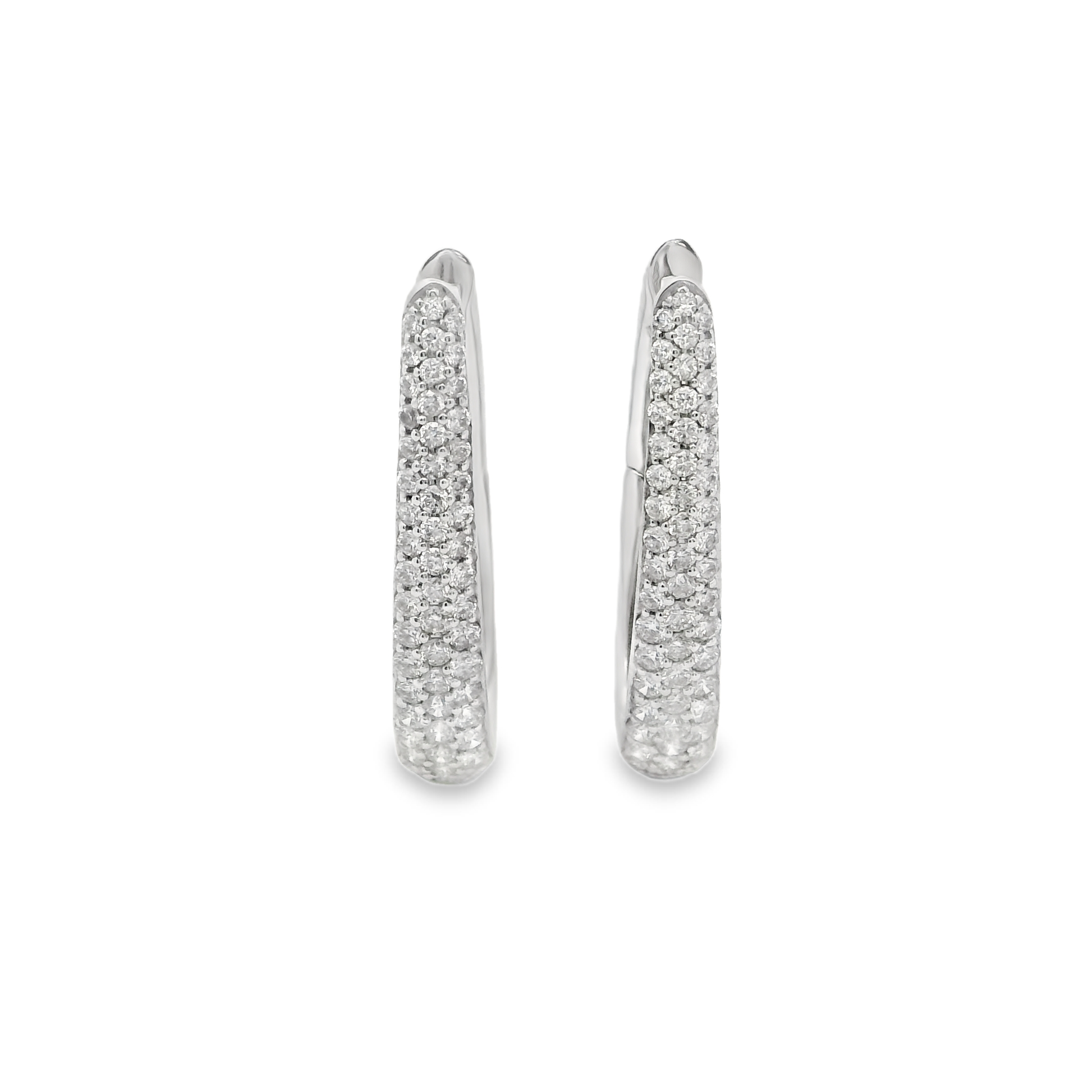 Pendientes de oro blanco de 18K con diamantes en talla brillante de 1.00 cts y calidad GH-VS. 2.5 cm de alta.