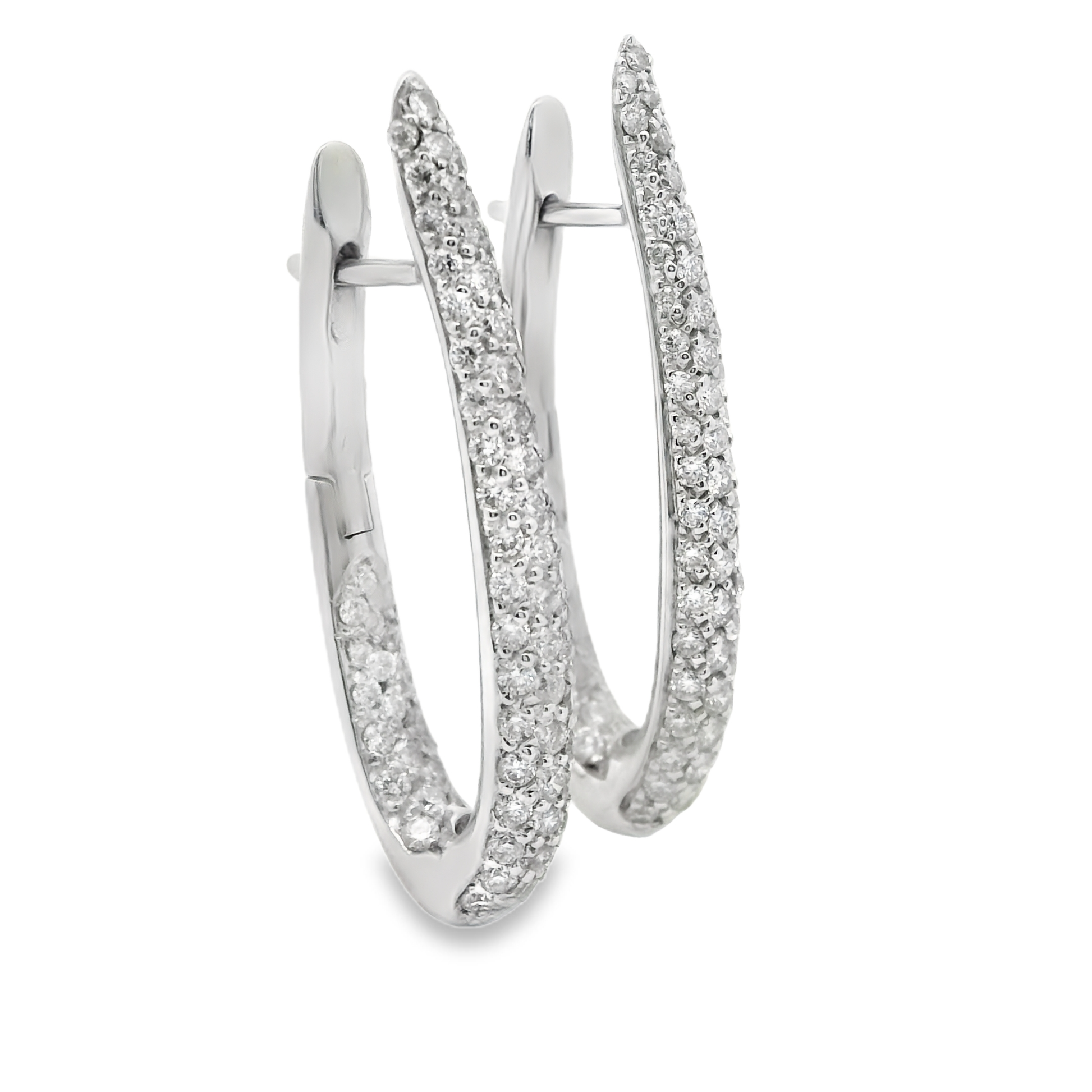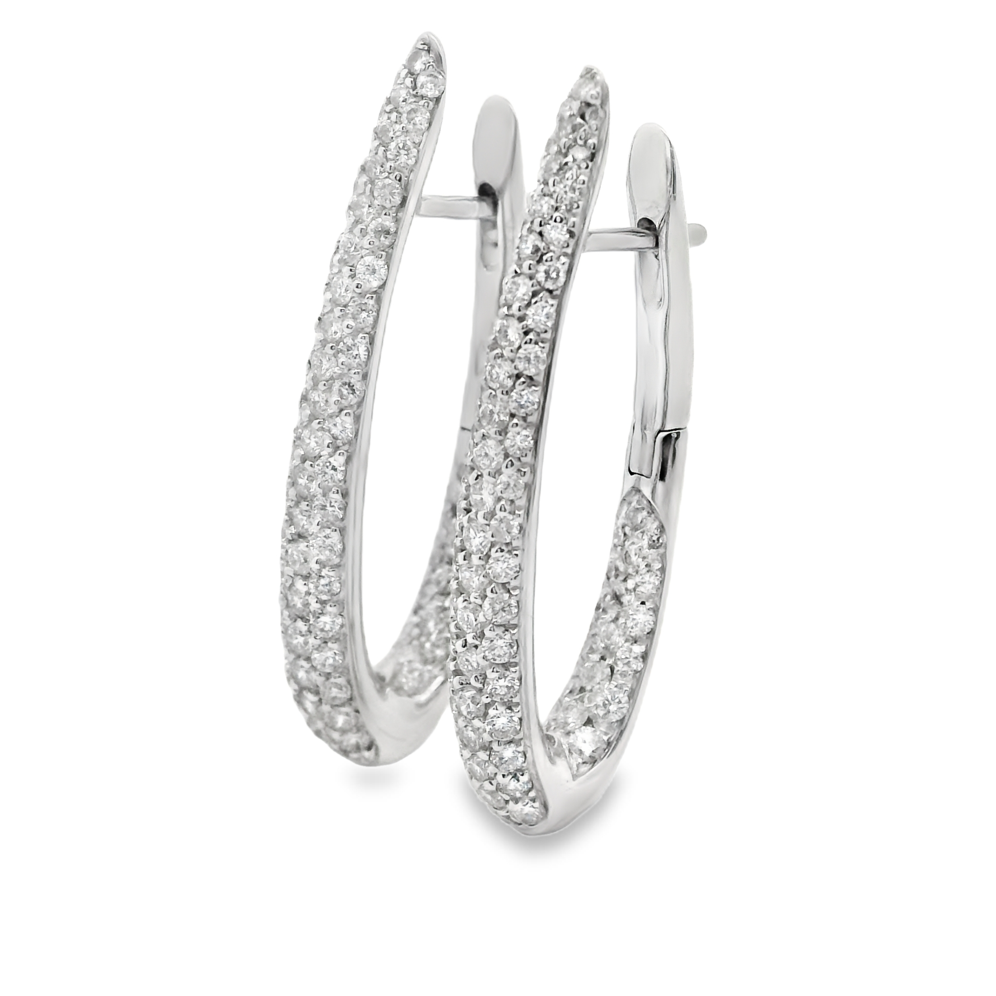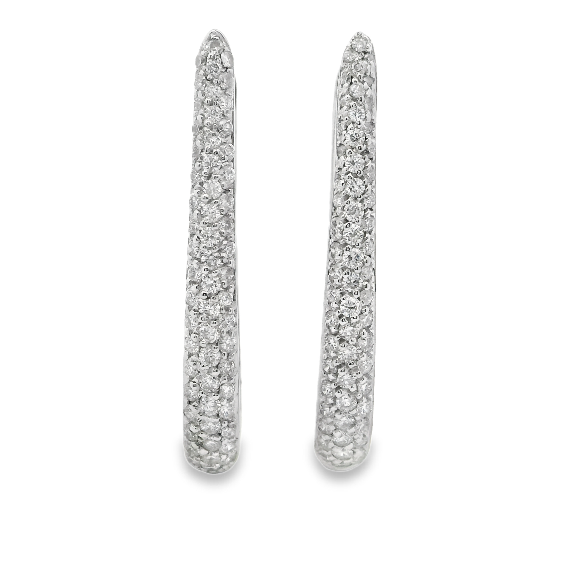 Pendientes de oro blanco de 18K con diamantes en talla brillante de calidad GH-VS. Con una altura de 3cm de alta.