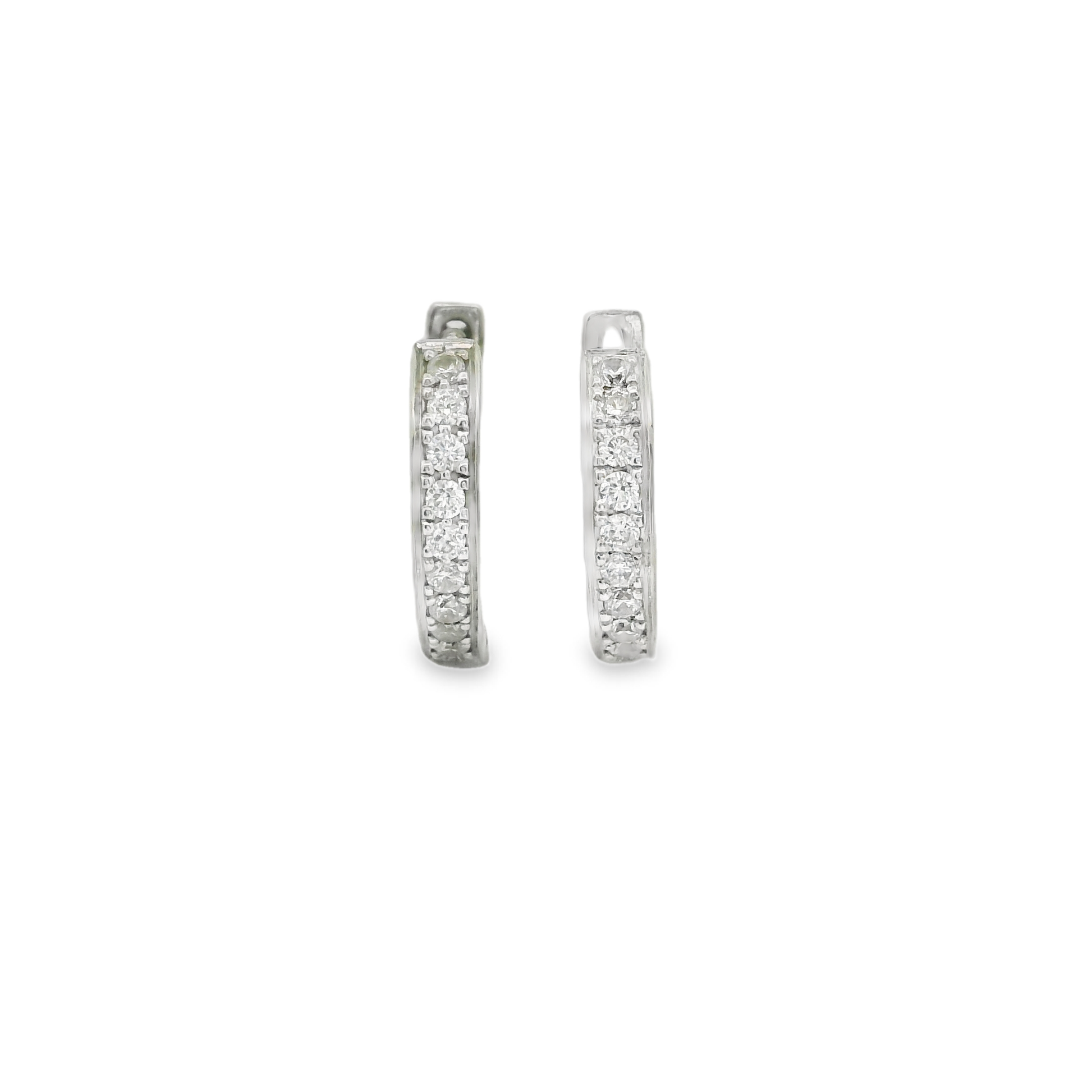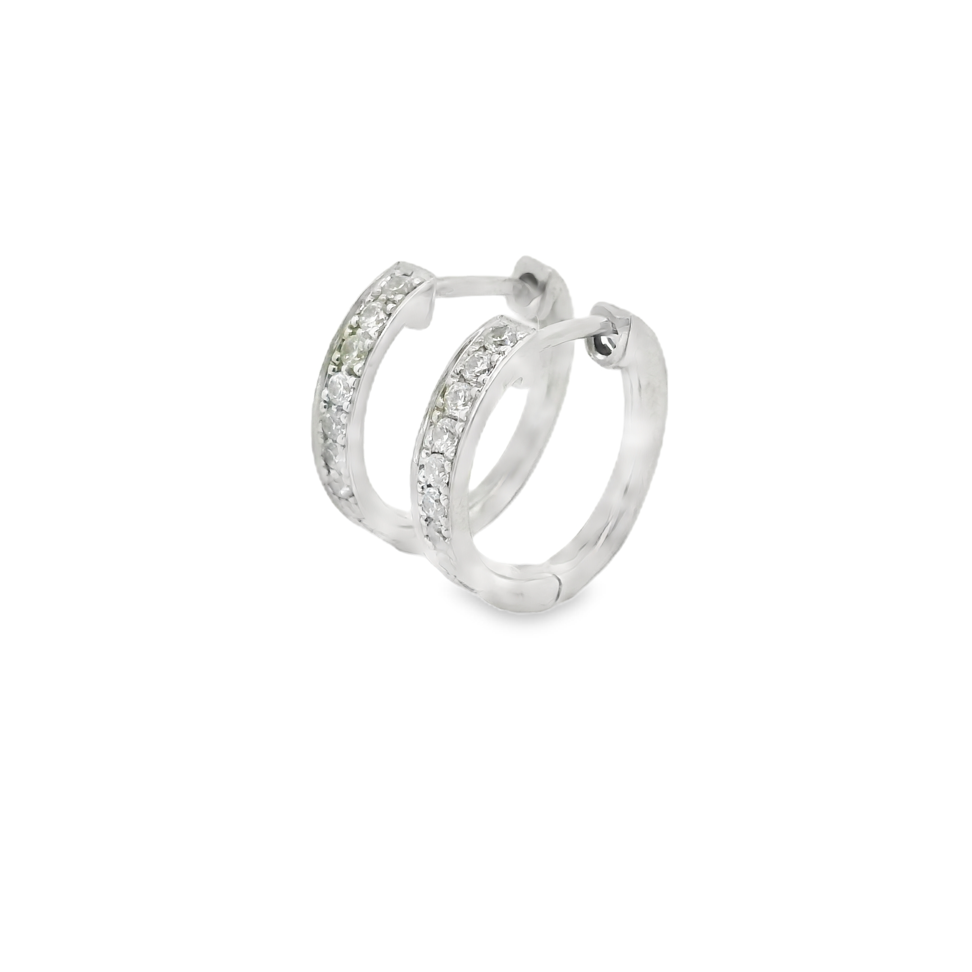 Pendientes de oro blanco de 18K con diamantes en talla brillante de 0.3 cts y calidad GH-VS. 1.5 cm de diámetro.