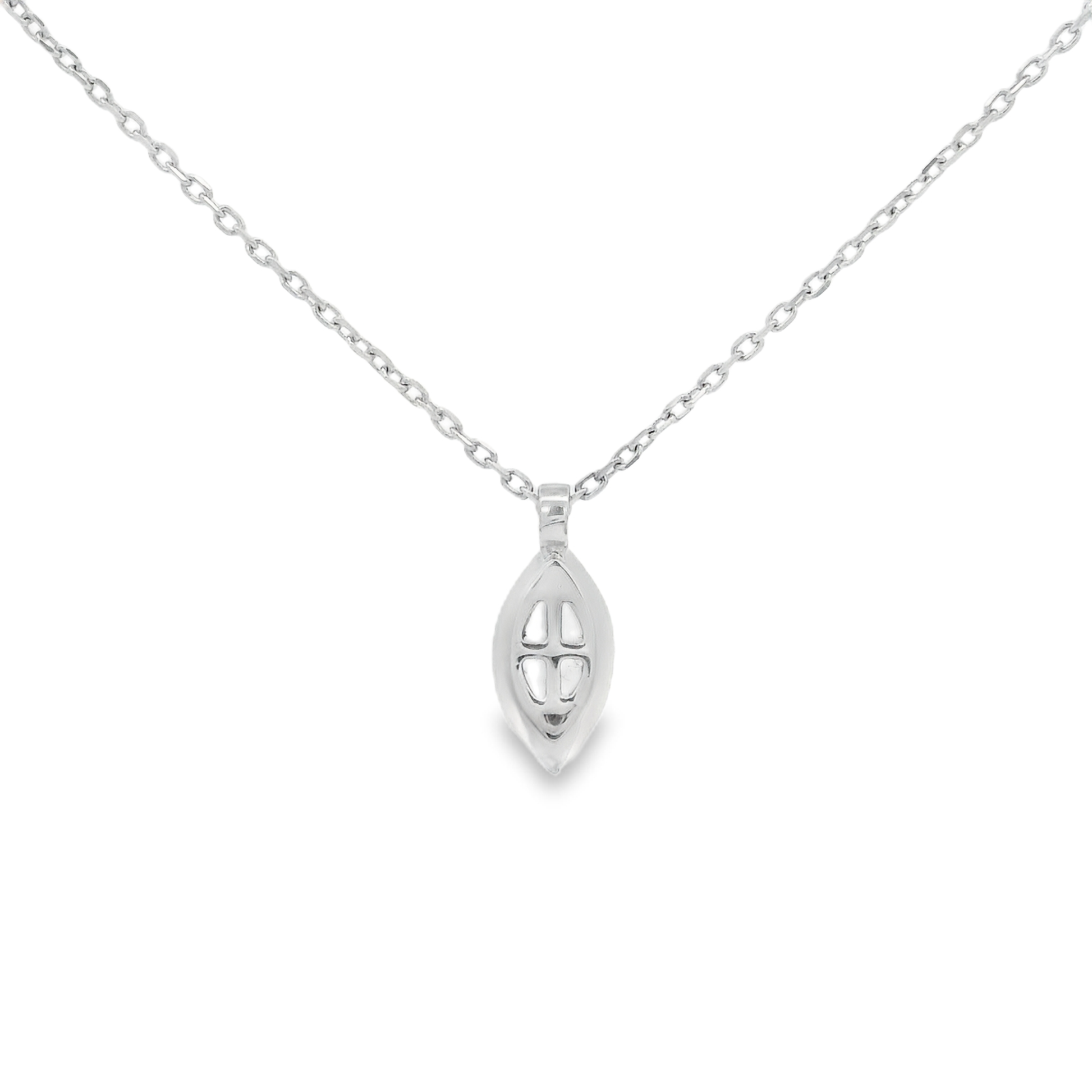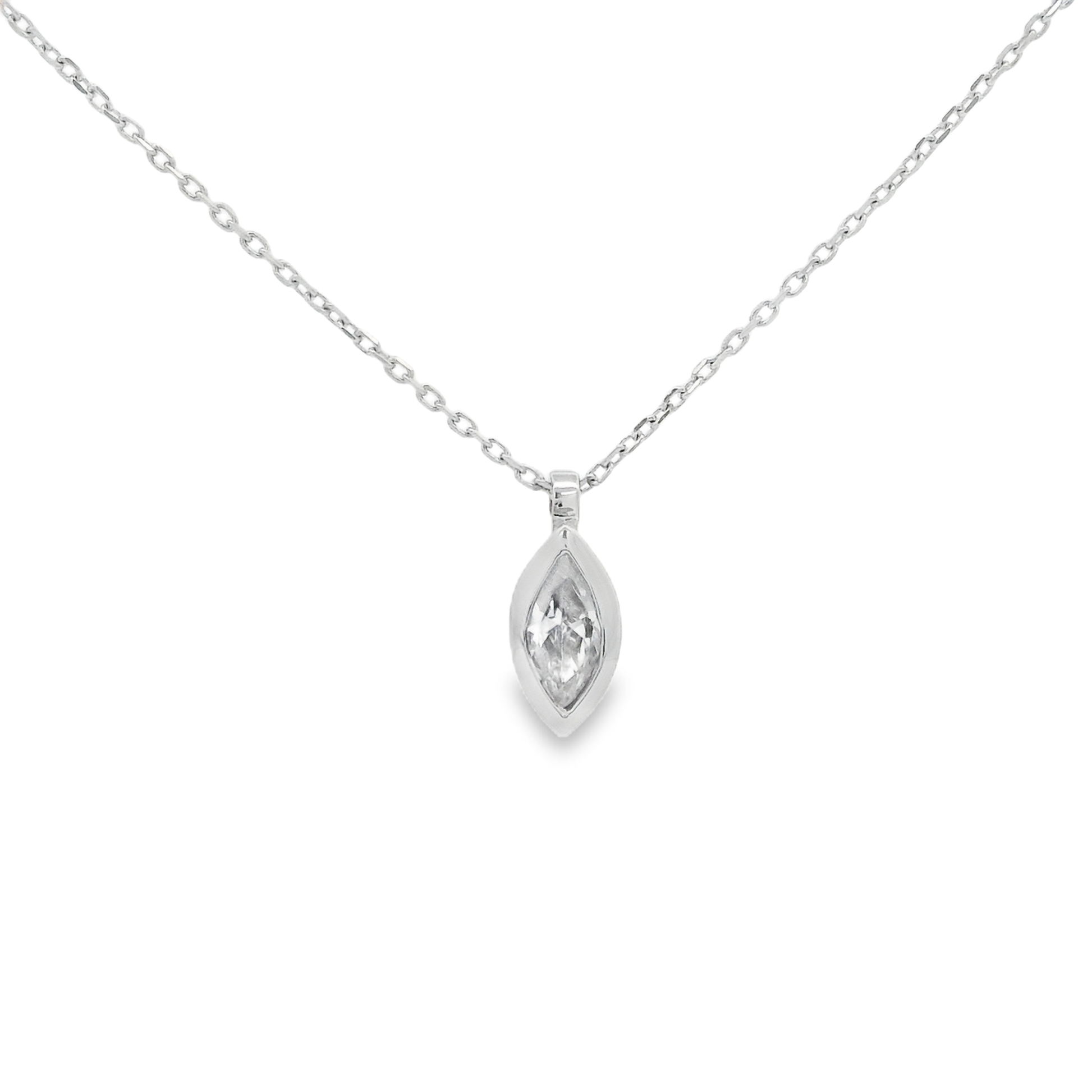Colgante de oro blanco de 18K con diamante en talla marquisse 0.16 CT de calidad GH-VS.
