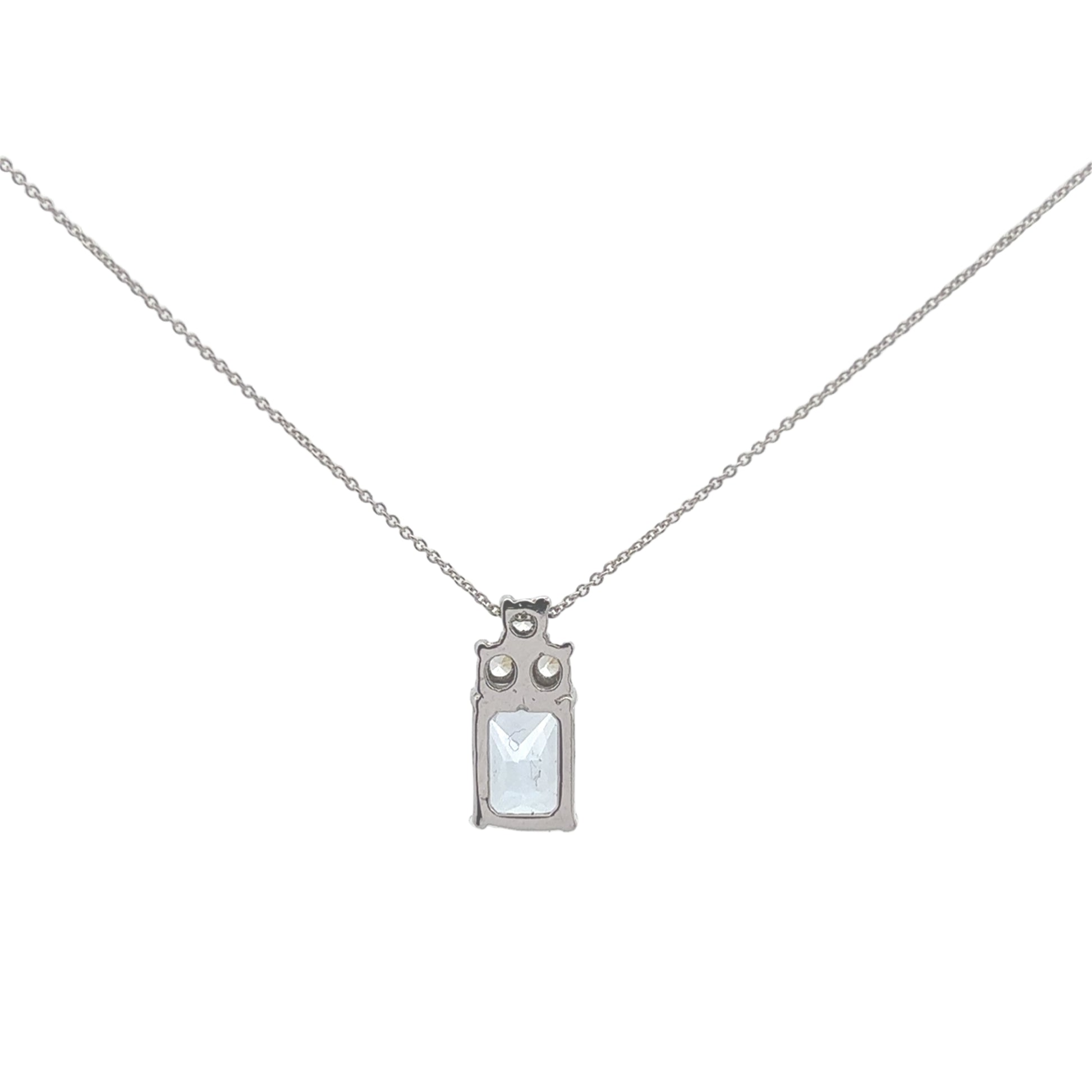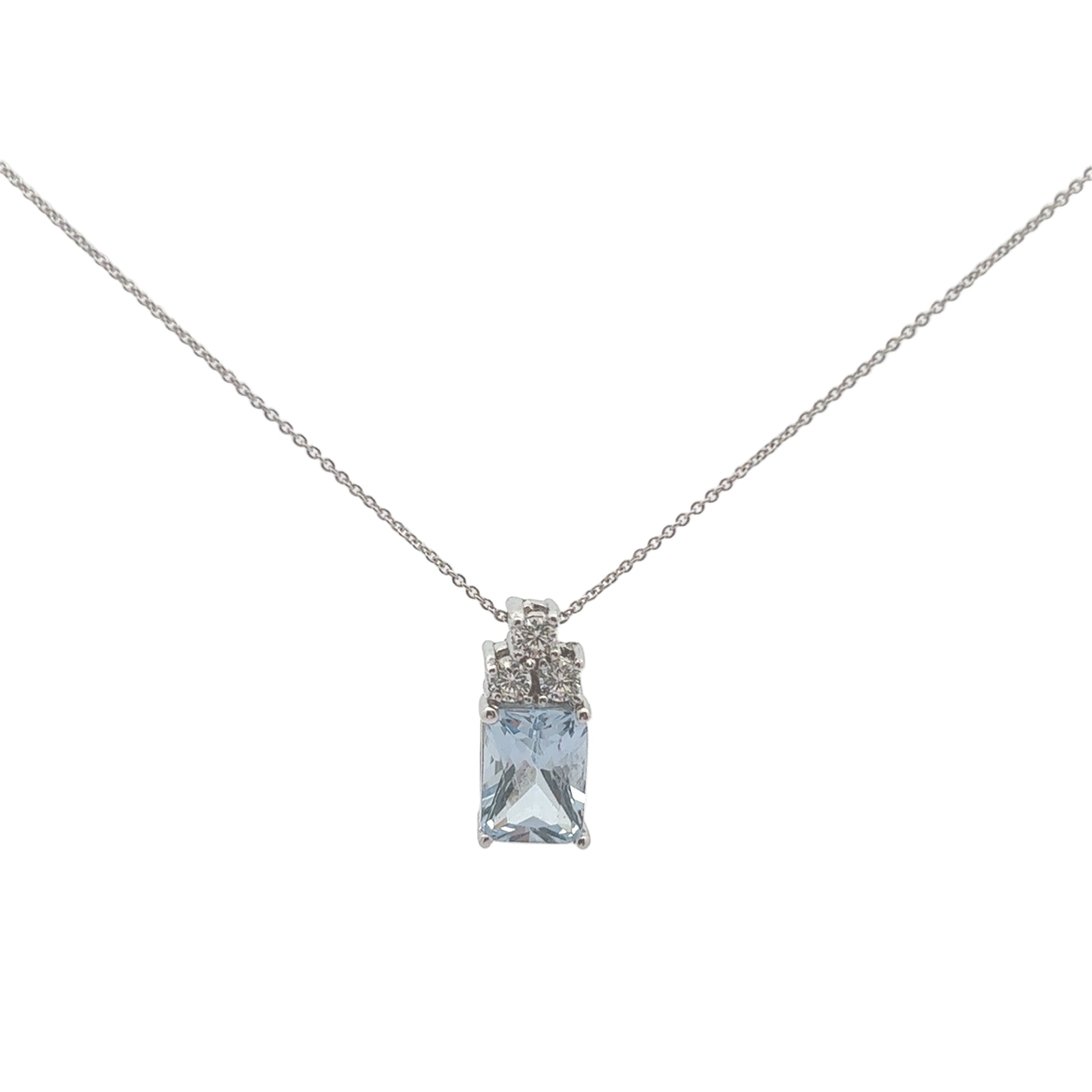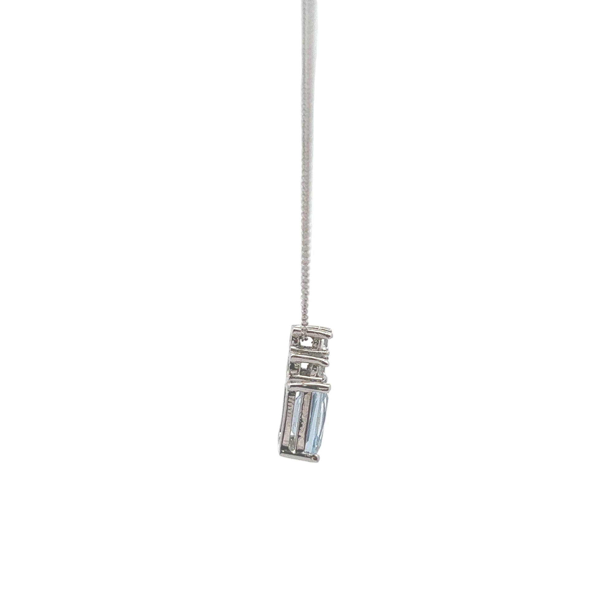Colgante de oro blanco de 18K con diamantes en talla brillante de 0.16 cts y calidad GH-VS con centro en Aguamarina talla Octógono de 1.43 cts.