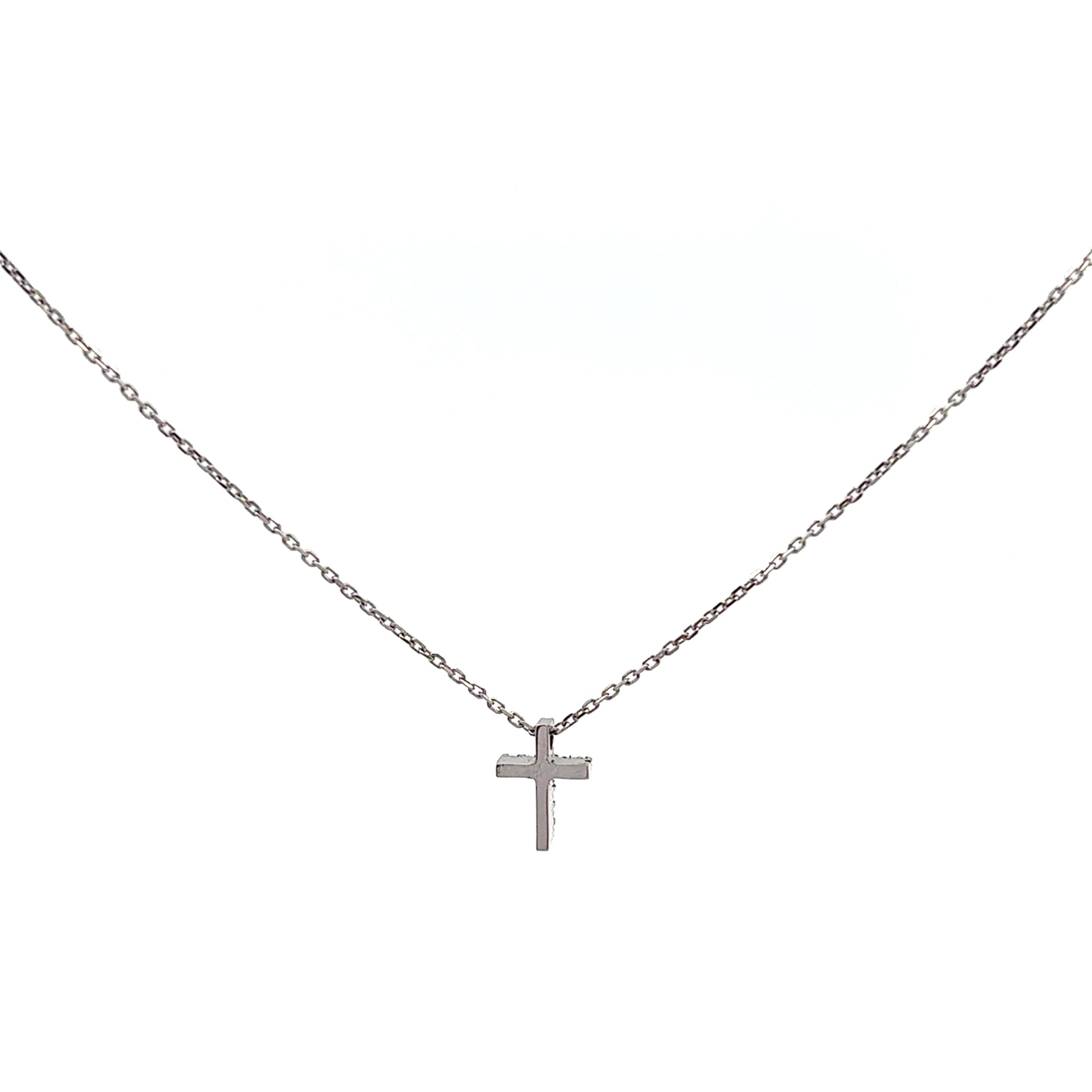 Cruz de oro blanco de 18K con diamantes en talla brillante de 0.05 cts y calidad GH-VS.