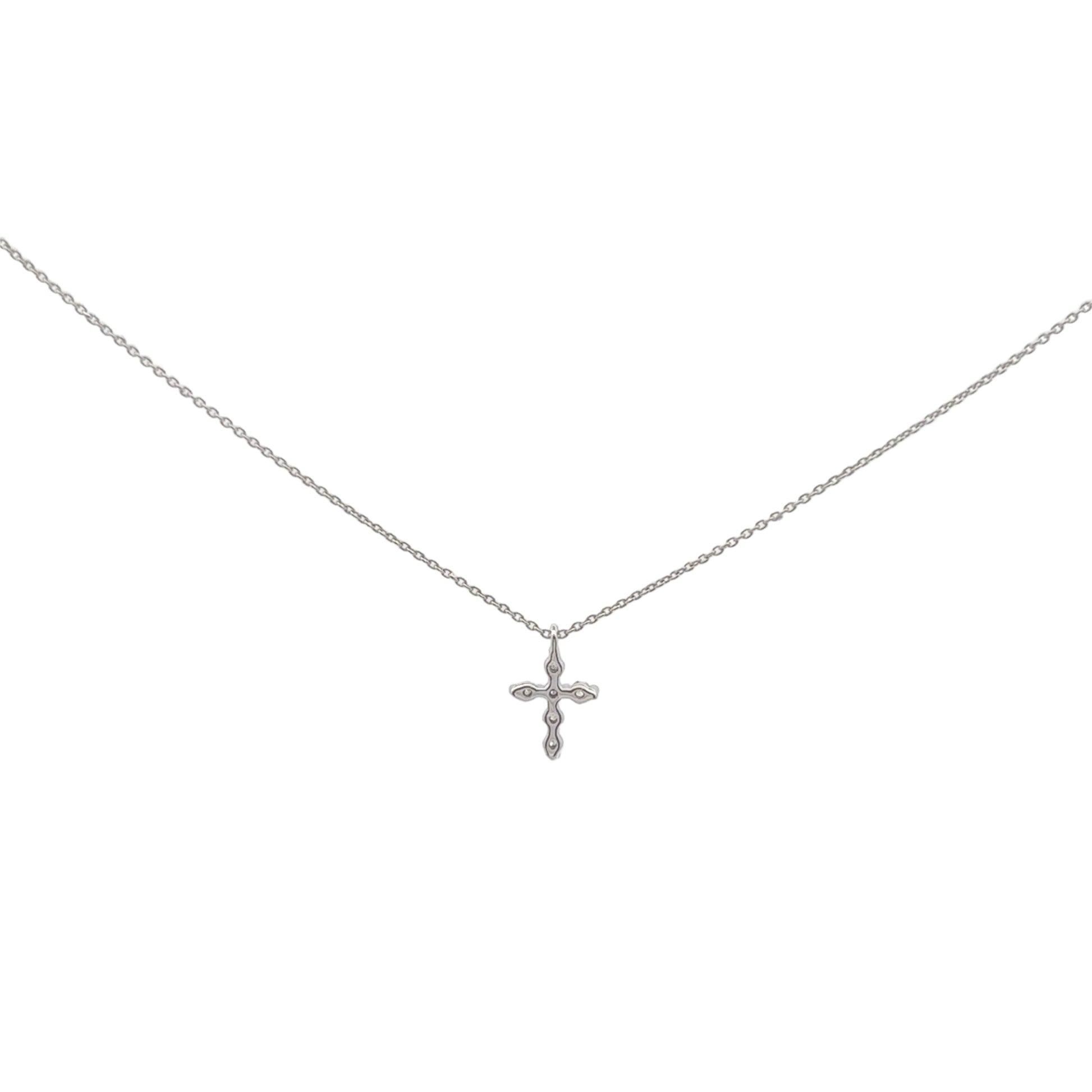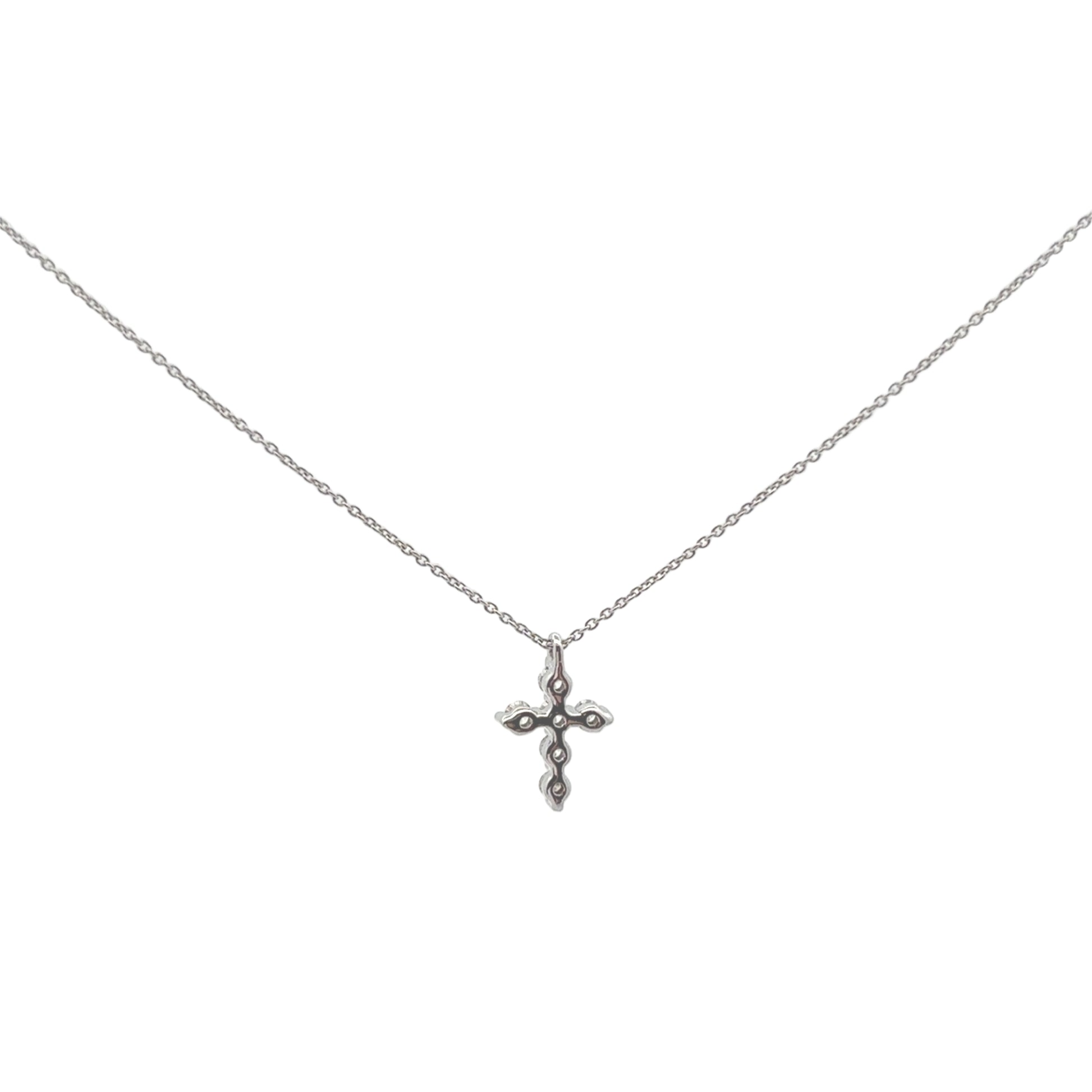 Cruz de oro blanco de 18K con diamante en talla brillante de calidad GH-VS.