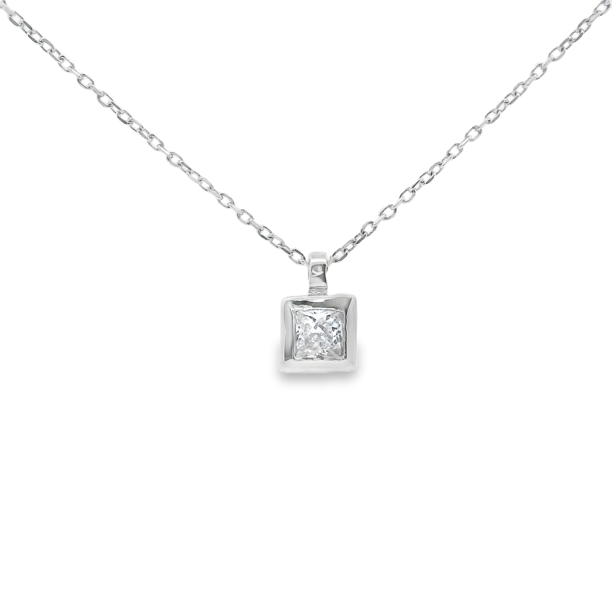 Colgante de oro blanco de 18K con diamante en talla princesa de 0.16 CT de calidad GH-VS.