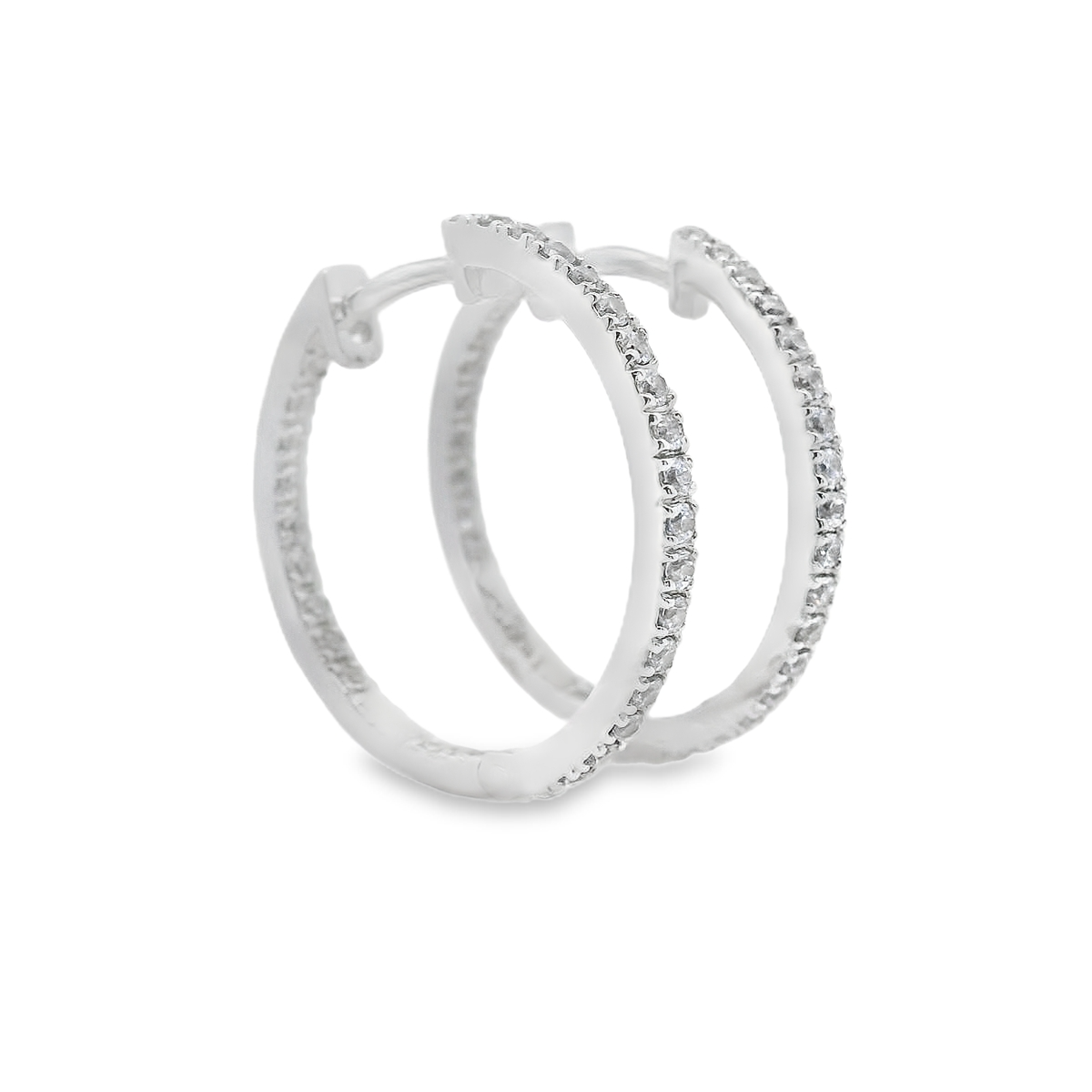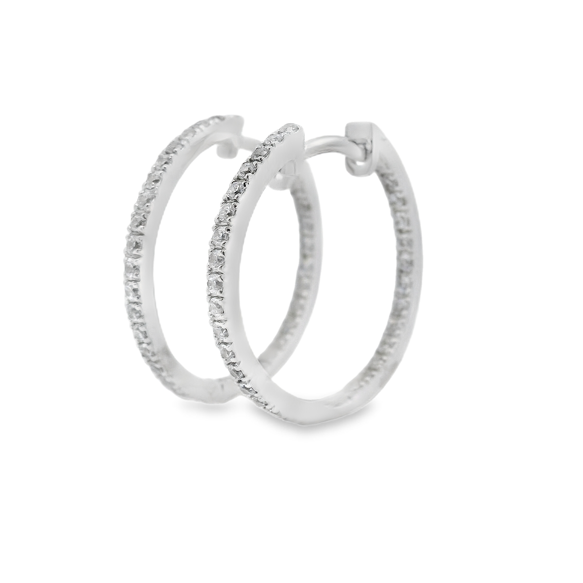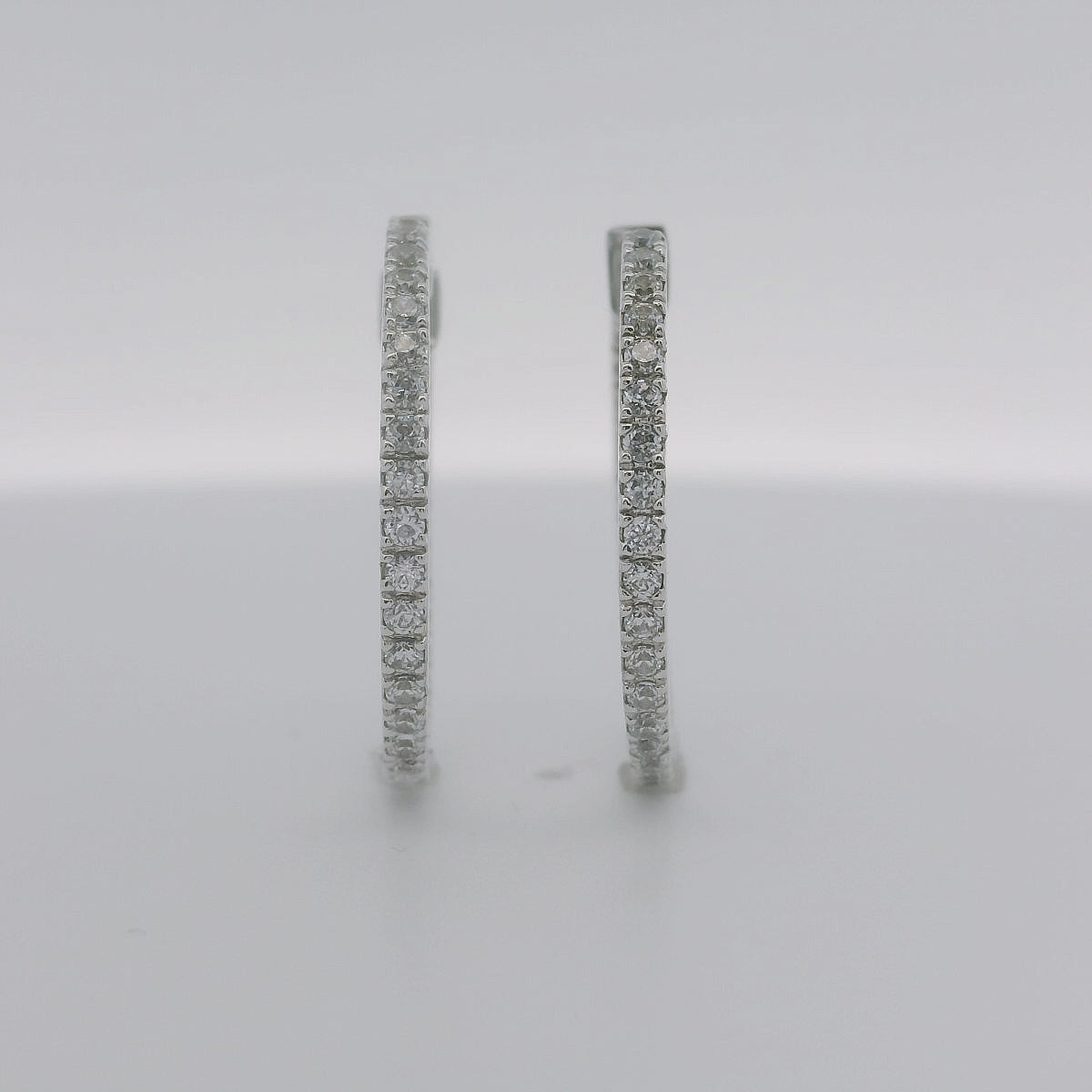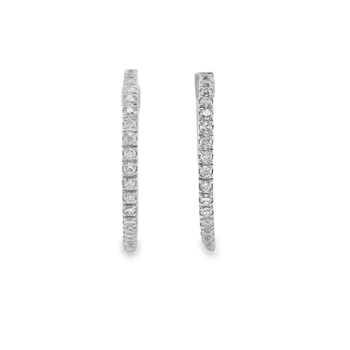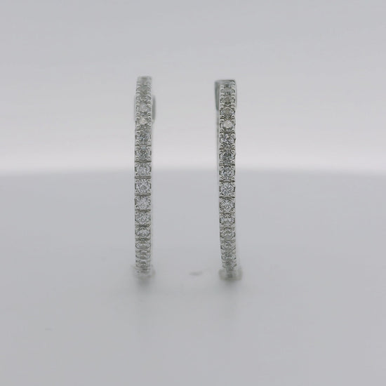 Pendientes de oro blanco de 18K con diamantes en talla brillante de 0.62 cts y calidad GH-VS. 2.00 cm de diámetro.