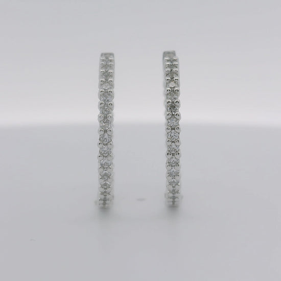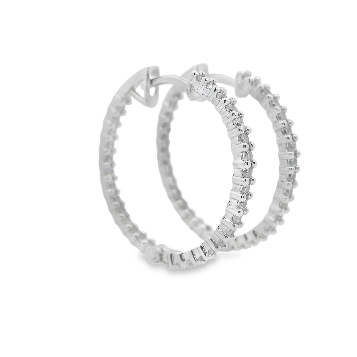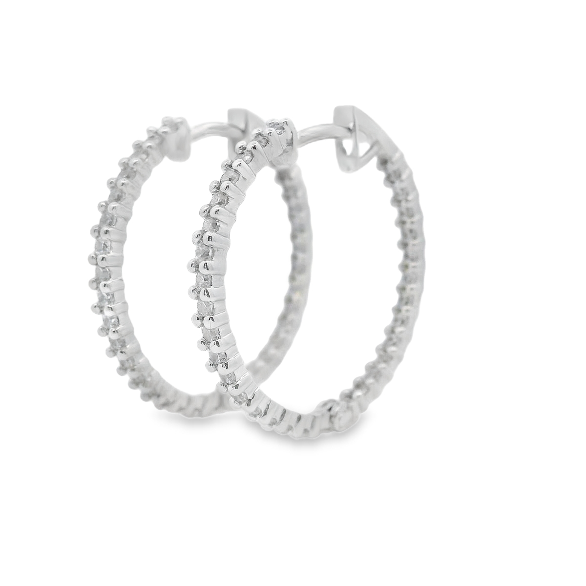 Pendientes de oro blanco de 18K con diamantes en talla brillante de 0.78 cts y calidad GH-VS. 2.00 cm de diámetro.