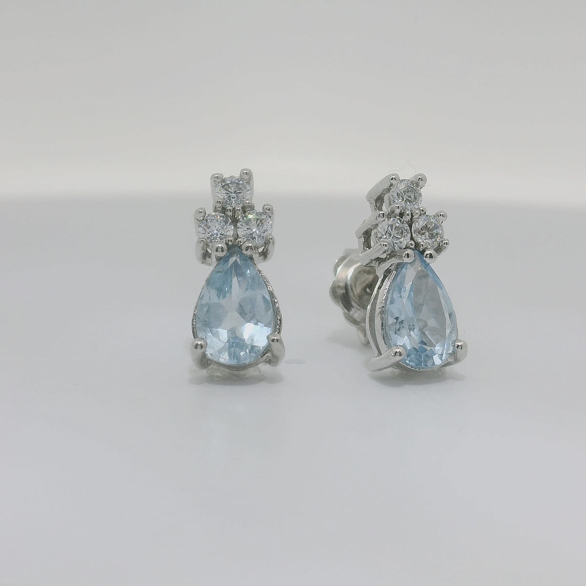 Pendientes de oro blanco de 18K con 2 Agua Marina 2.00 CTS, con 0.33 CTS de diamantes talla brillante. Calidad GH-VS.