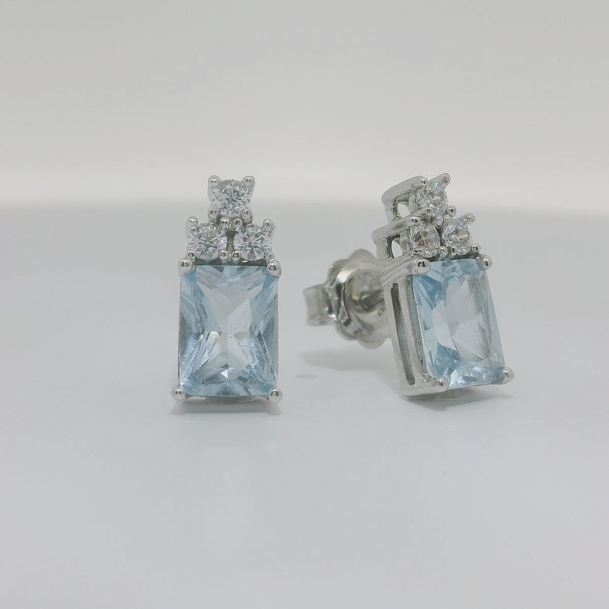 Pendientes de oro blanco de 18K con 2 Agua Marinas 1.86 CTS, con 0.33 CTS de diamantes talla brillante. Calidad GH-VS.