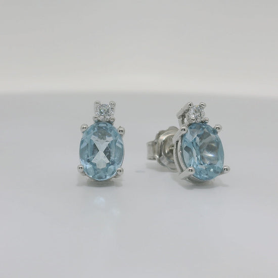 Pendientes de oro blanco de 18K con 2 Agua Marina 1.70 CTS, con 0.09 CTS de diamantes talla brillante. Calidad GH-VS.
