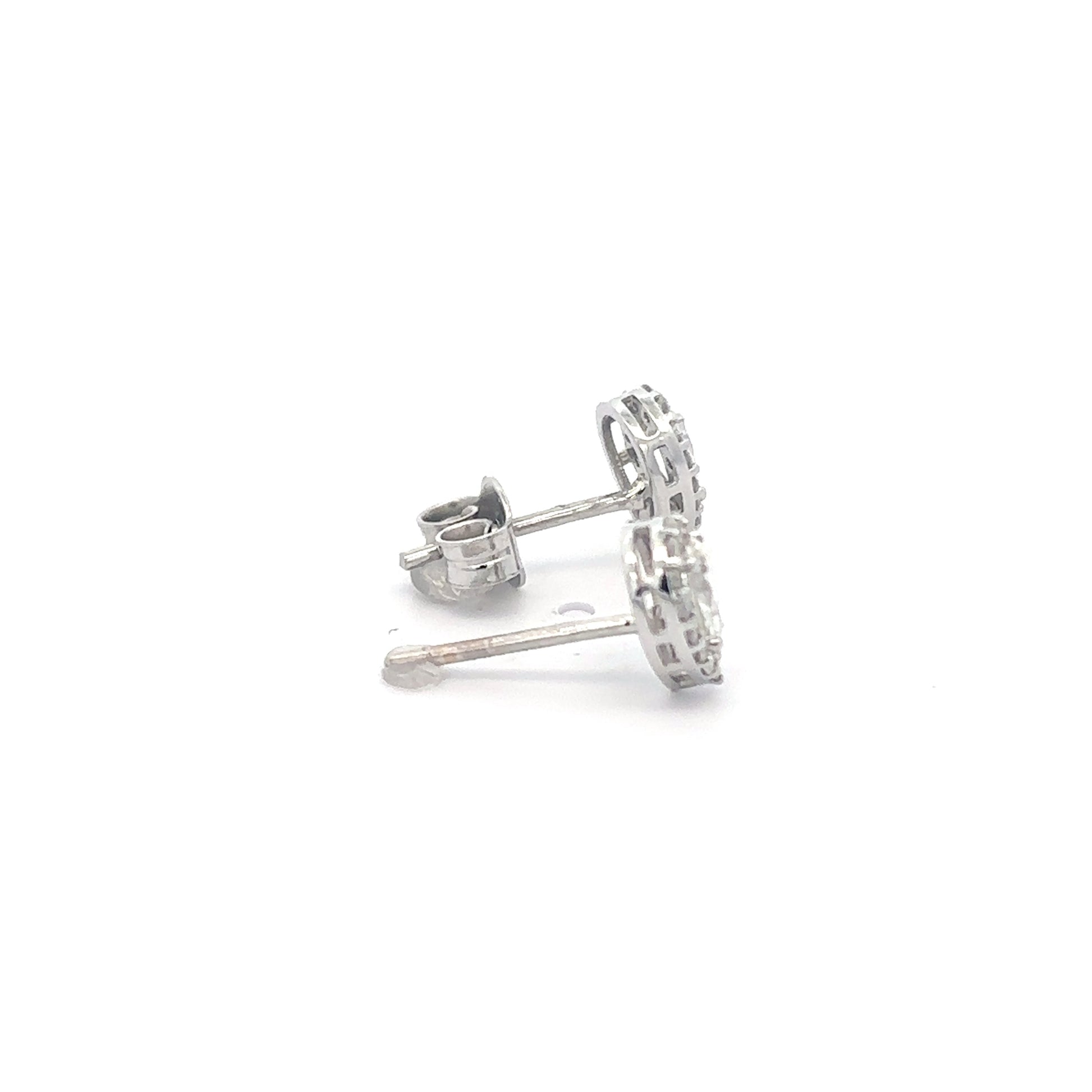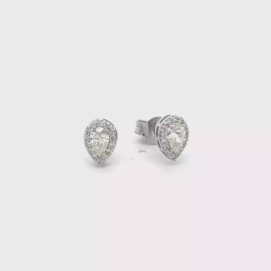 Pendientes de oro blanco de 18K con 2 diamantes en talla pera 0.40 CT y 0.14 CT en diamantes talla brillante en la orla de calidad GH-VS. Cierre presión.
