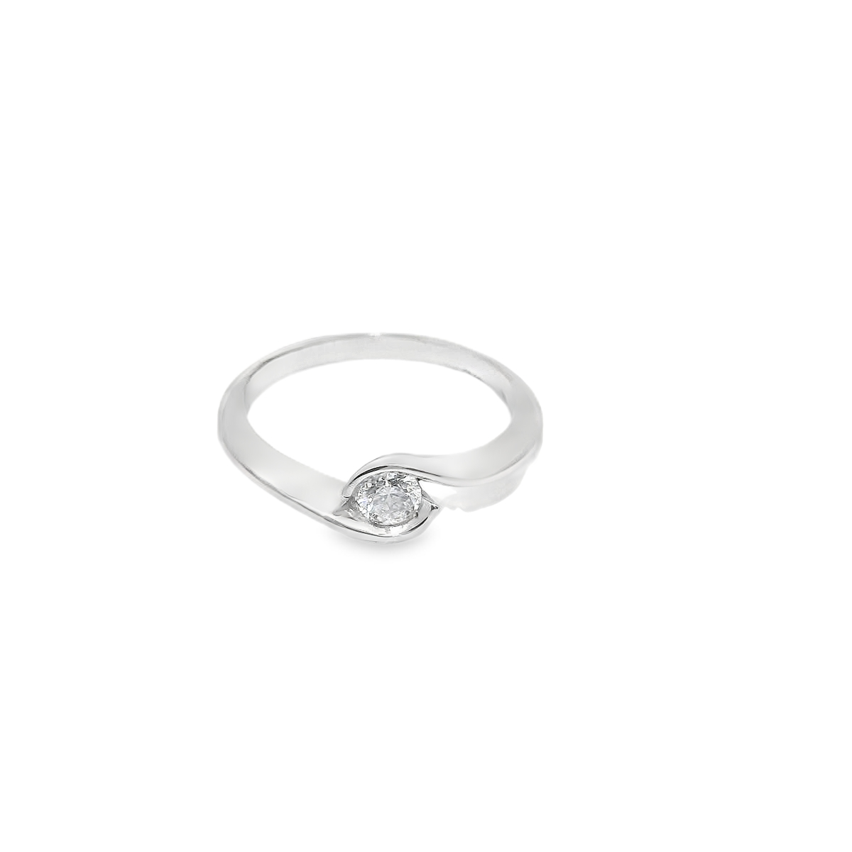 Anillo de oro blanco de 18K con diamante en talla brillante de calidad GH-VS.