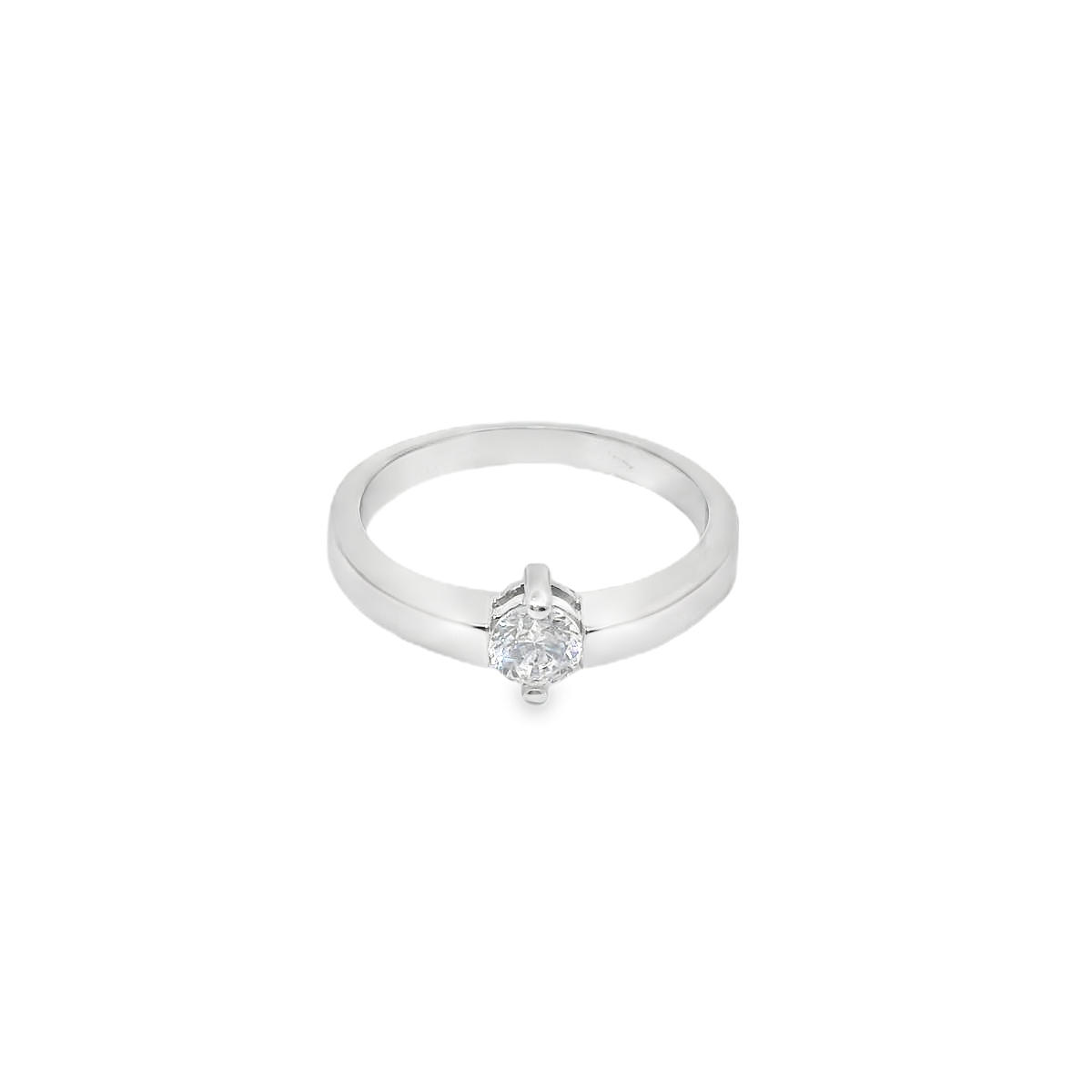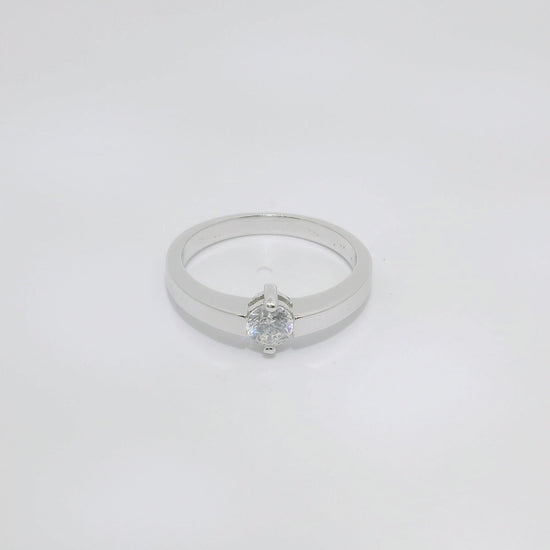 Anillo de oro blanco de 18K con diamante en talla brillante de calidad GH-VS.
