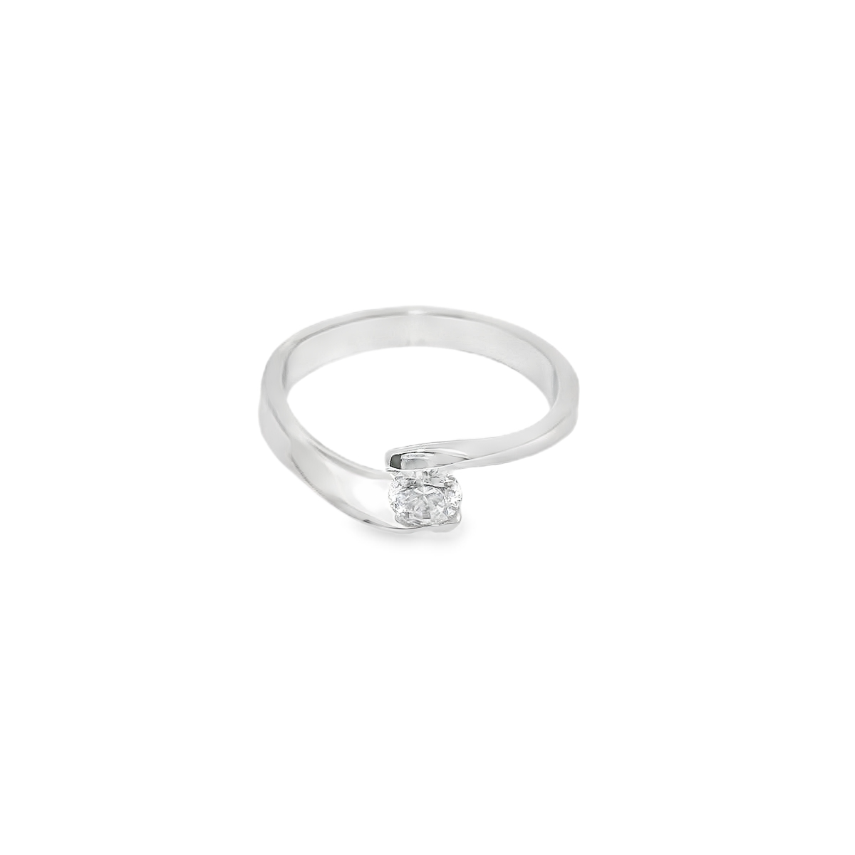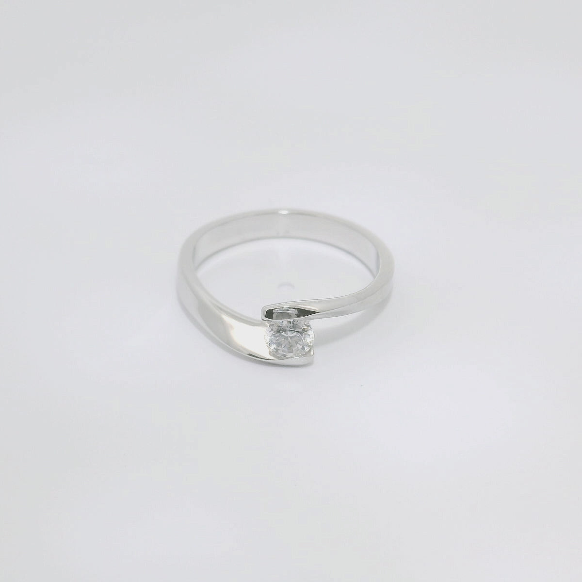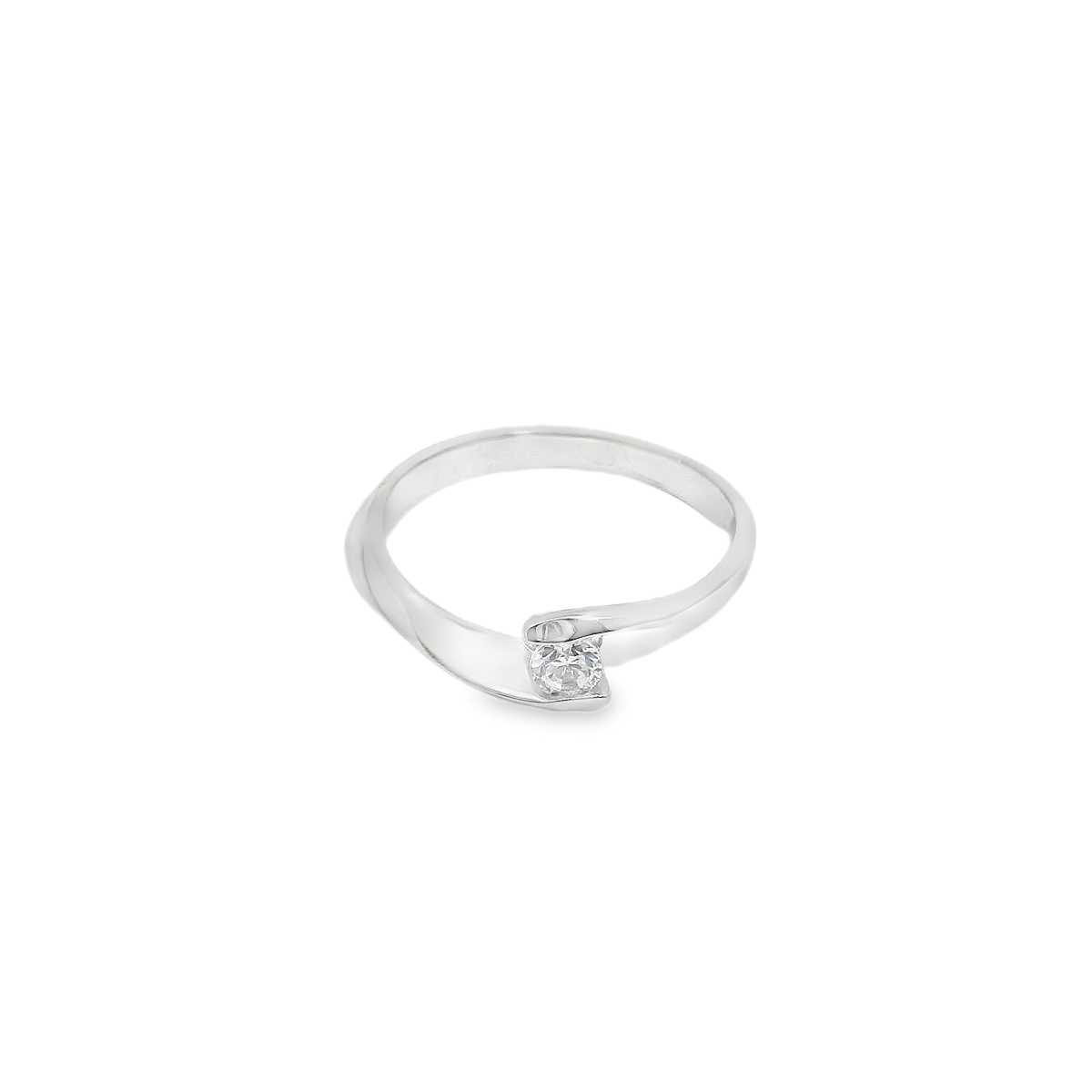 Anillo de oro blanco de 18K con diamante en talla brillante de calidad GH-VS.