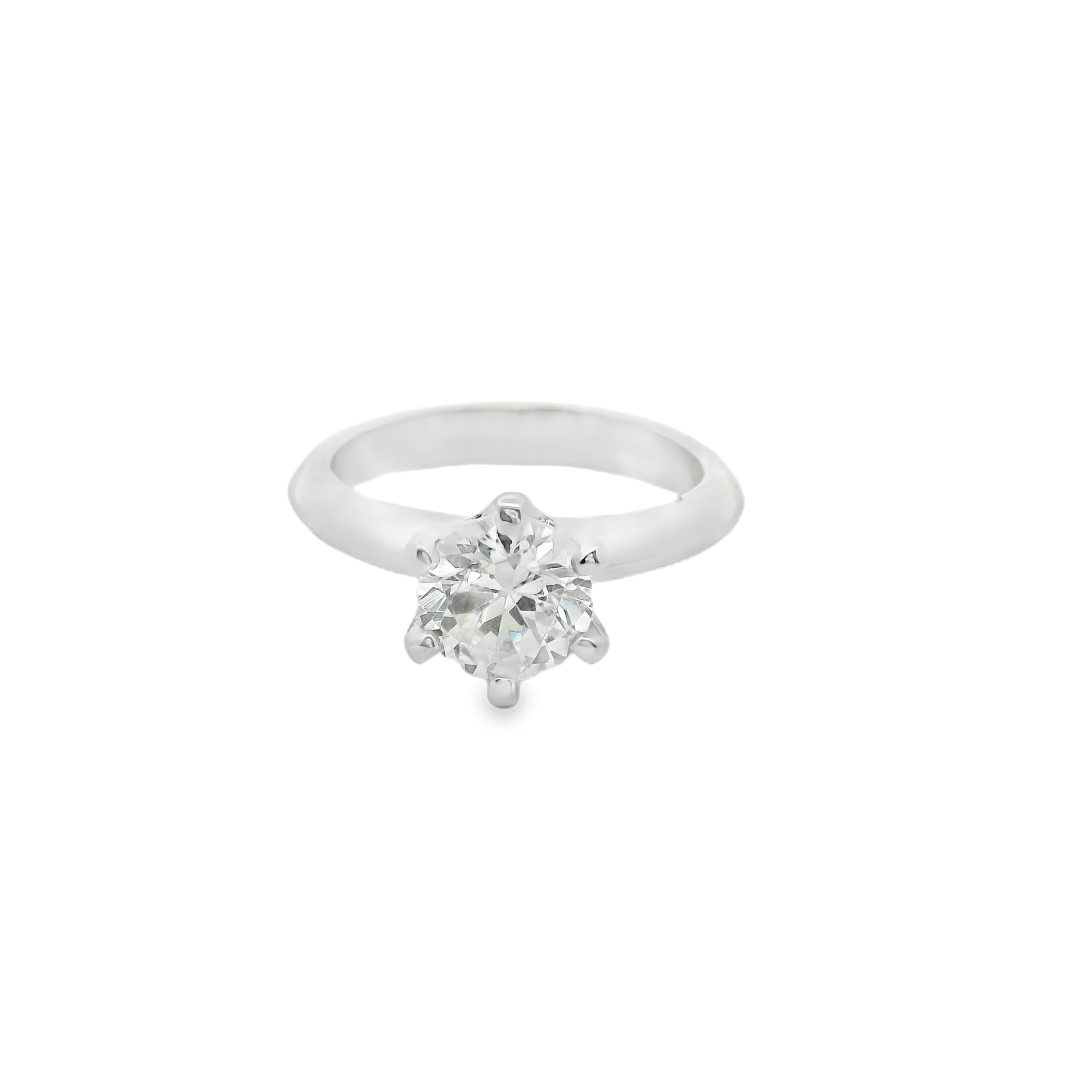 Anillo de oro blanco de 18K con diamantes en talla brillante de 1.00 CT y calidad GH-VS.