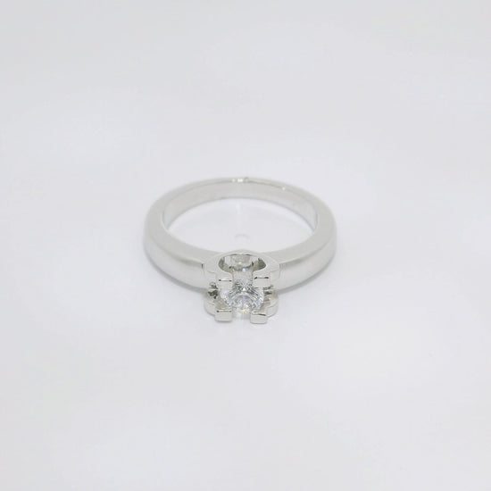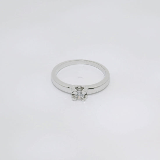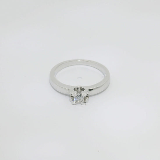 Anillo de oro blanco de 18K con diamante en talla brillante de calidad GH-VS.