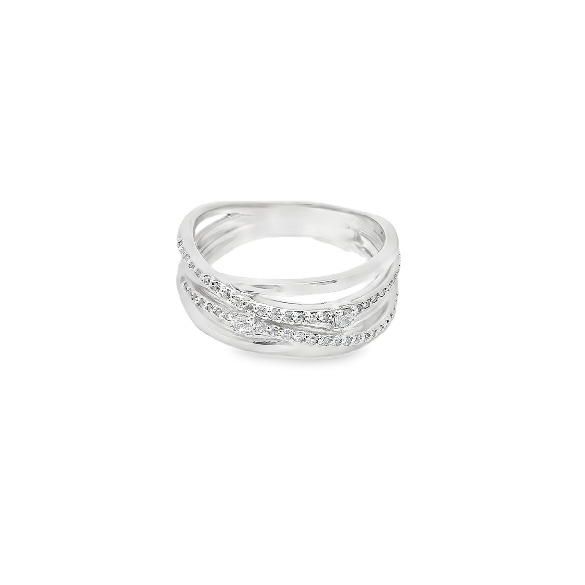 Anillo de oro blanco de 18K con diamantes en talla brillante de 0.28 CTS y calidad GH- VS.