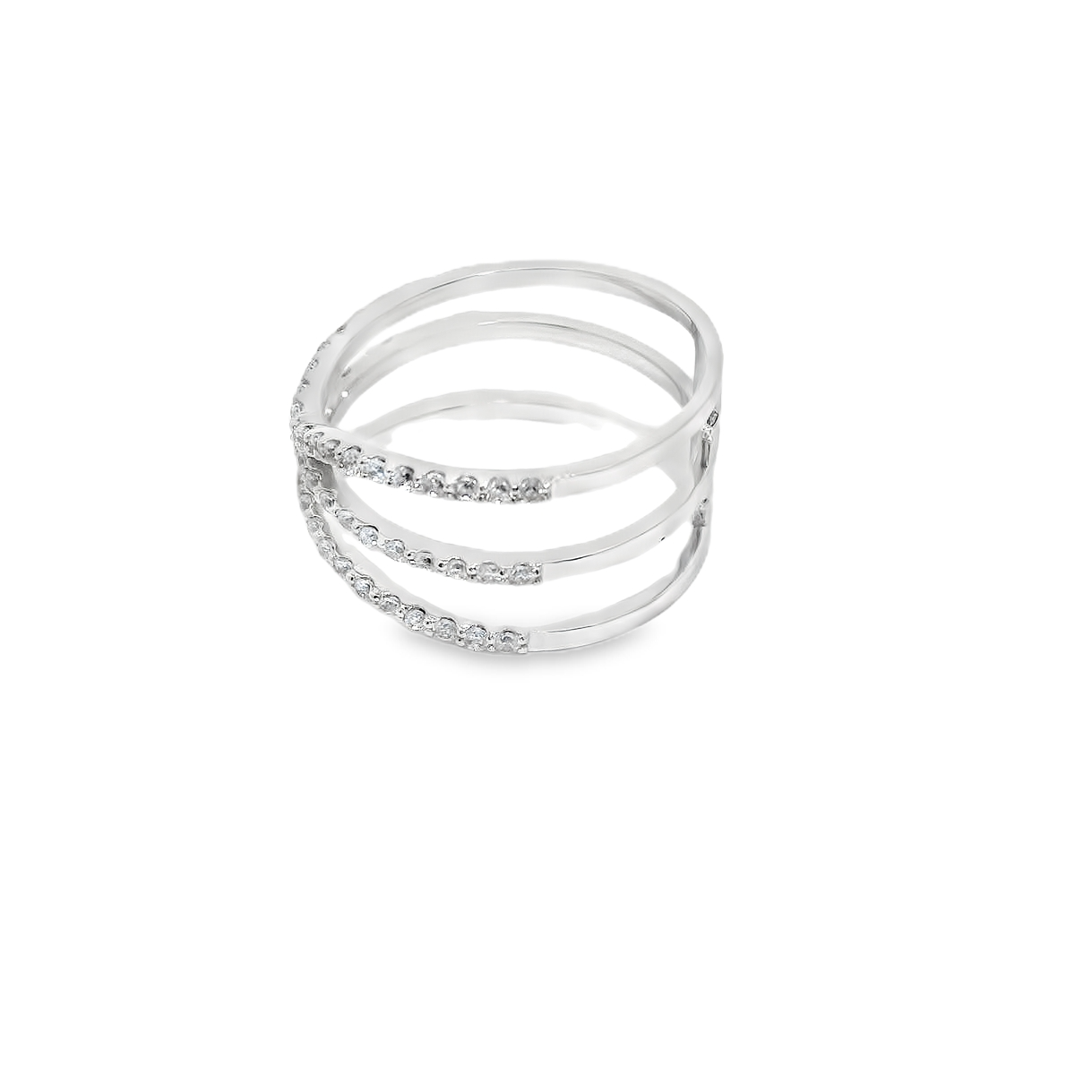 Anillo de oro blanco de 18K con diamantes en talla brillante de 0.58 CTS y calidad GH- VS.