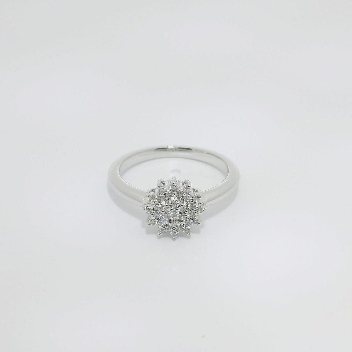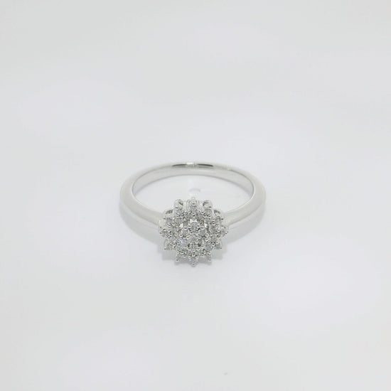 Anillo de oro blanco de 18K con diamantes en talla brillante de 0.16 CTS y calidad GH- VS.