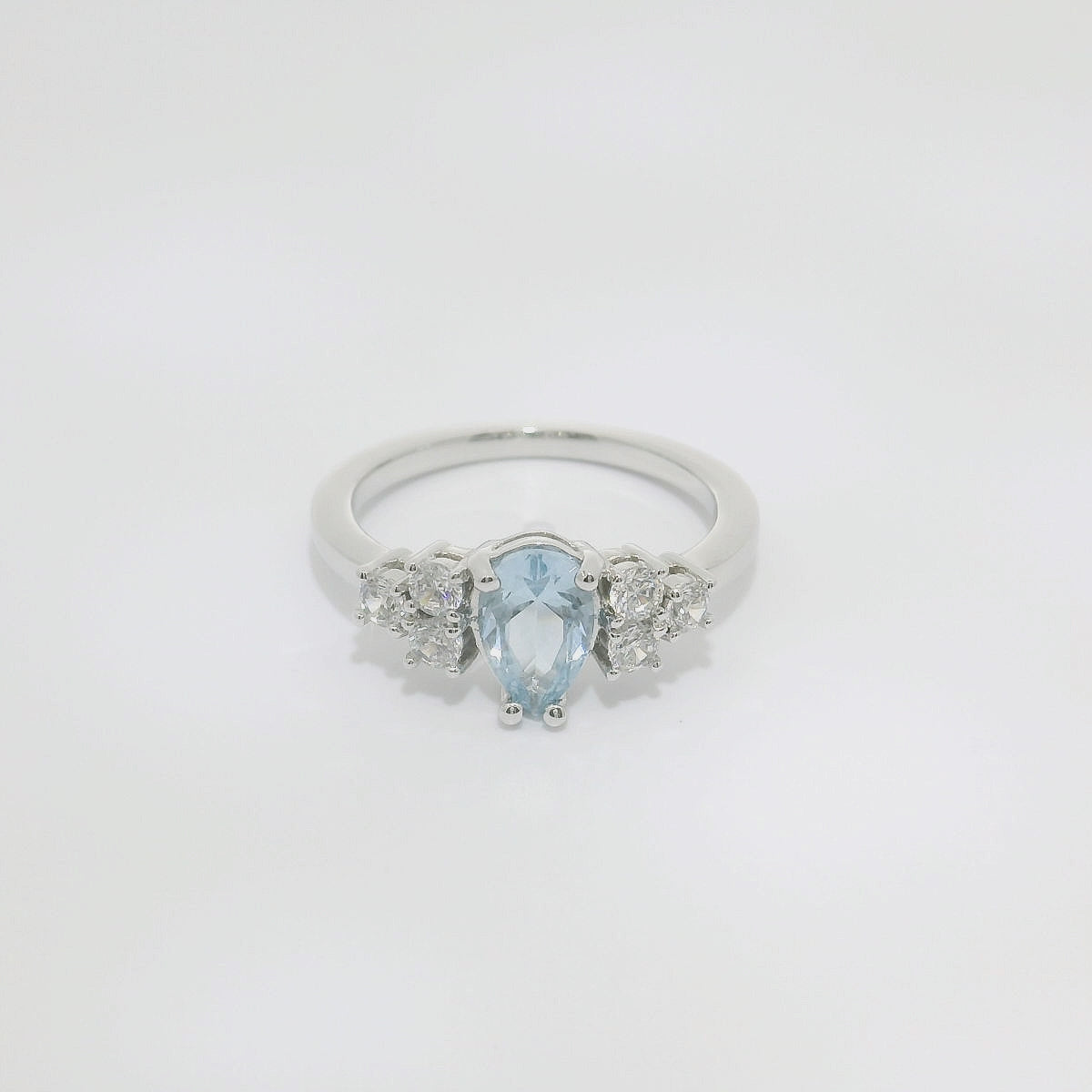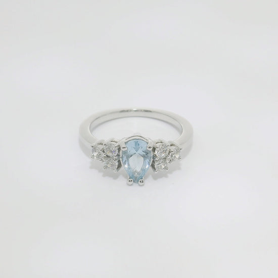 Anillo de oro blanco de 18K con Agua Marina central de 1.0 CT, con 0.33 CTS de diamantes talla brillante en el brazo. Calidad GH-VS.