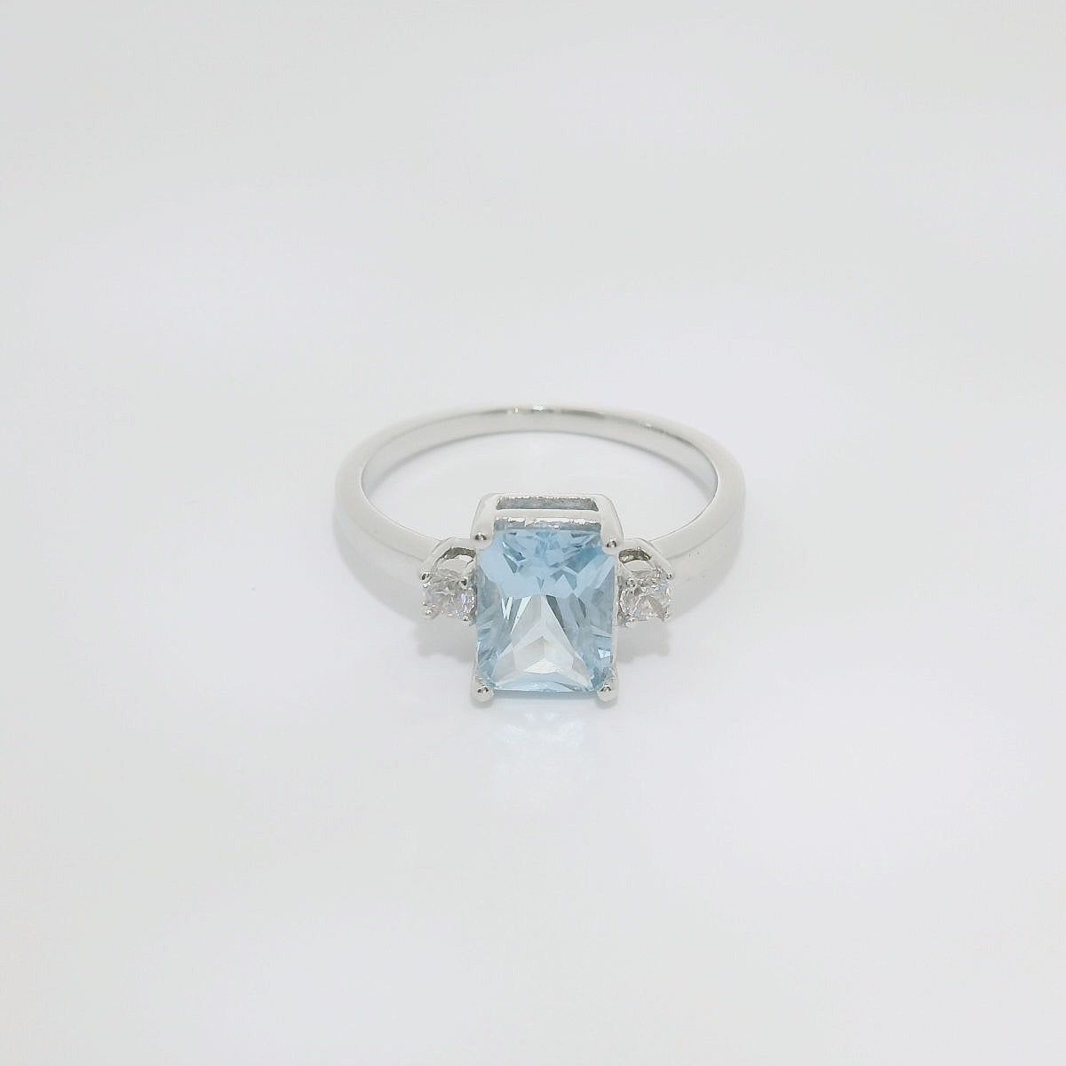 Anillo de oro blanco de 18K con Agua Marina central de 1.43 CTS, con 0.12 CTS de diamantes talla brillant. Calidad GH-VS.
