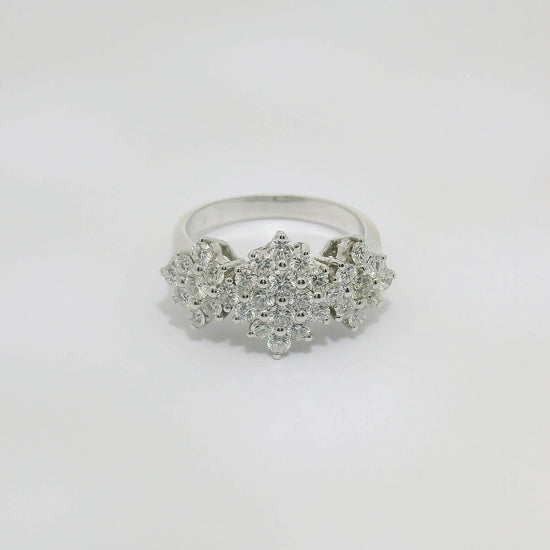Anillo de oro blanco de 18K con diamantes en talla brillante de 1.30 CTS y calidad GH- VS.