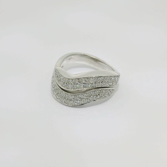 Anillo de oro blanco de 18K con diamantes en talla brillante de 0.90 CTS y calidad GH- VS.