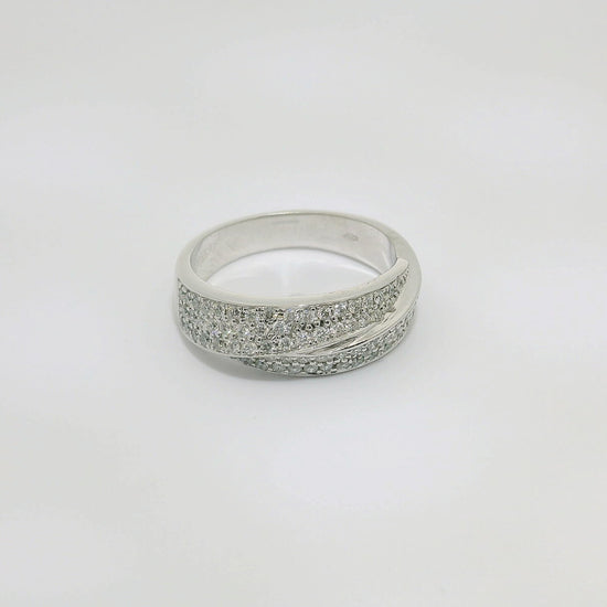 Anillo de oro blanco de 18K con diamantes en talla brillante de 0.70 CTS y calidad GH- VS.
